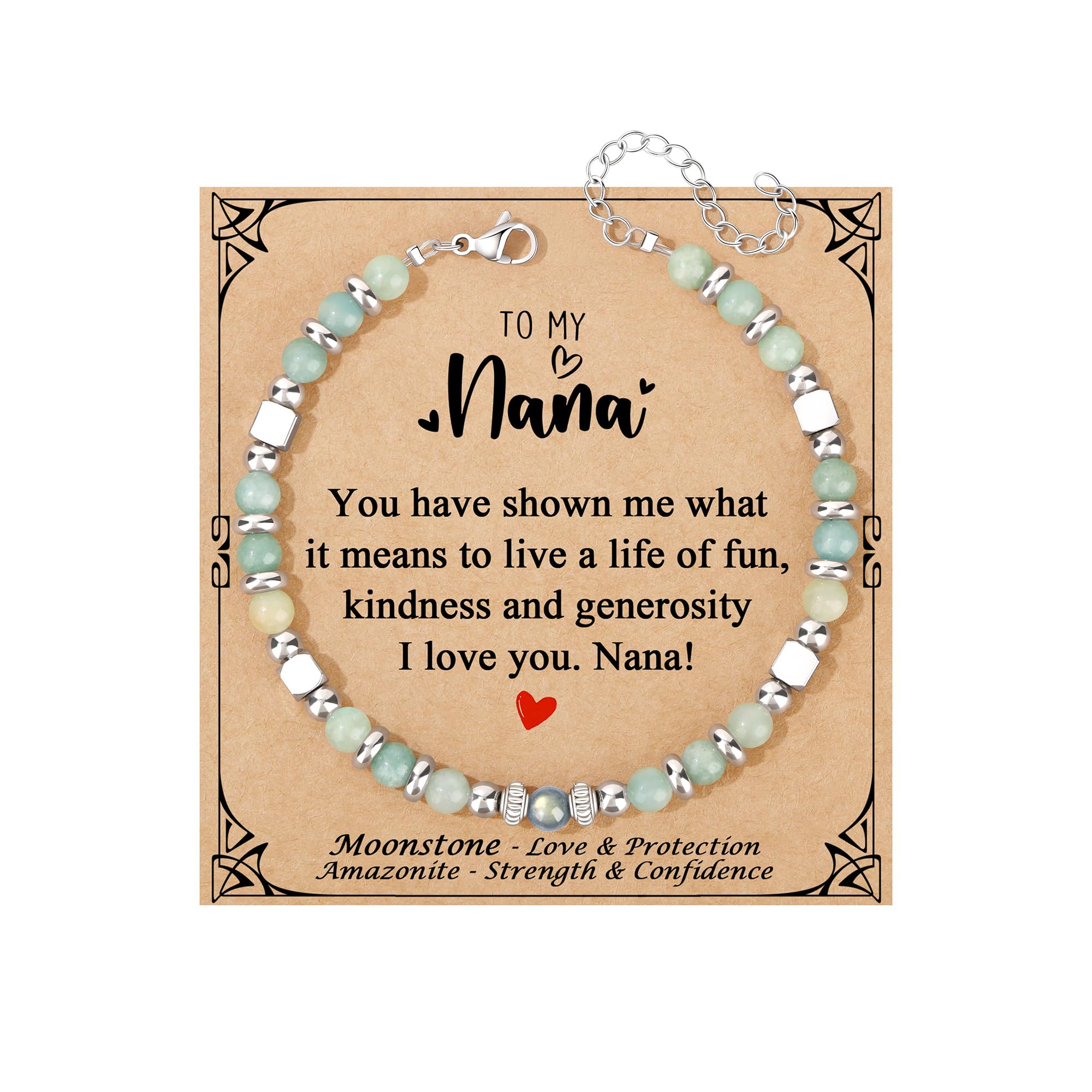 πNana Gifts: If you are looking for a special gift for your nana, this beautiful bracelet and message card filled with warm words will be your best choice! A Meaningful bracelet and a Heartfelt card in a gift box - The nice surprise for her. When she receives such an exquisitely adorable bracelet, reads the heartfelt words on the card, and understands the meaning it represents, she will surely be utterly surprised and cherish this gift deeply.