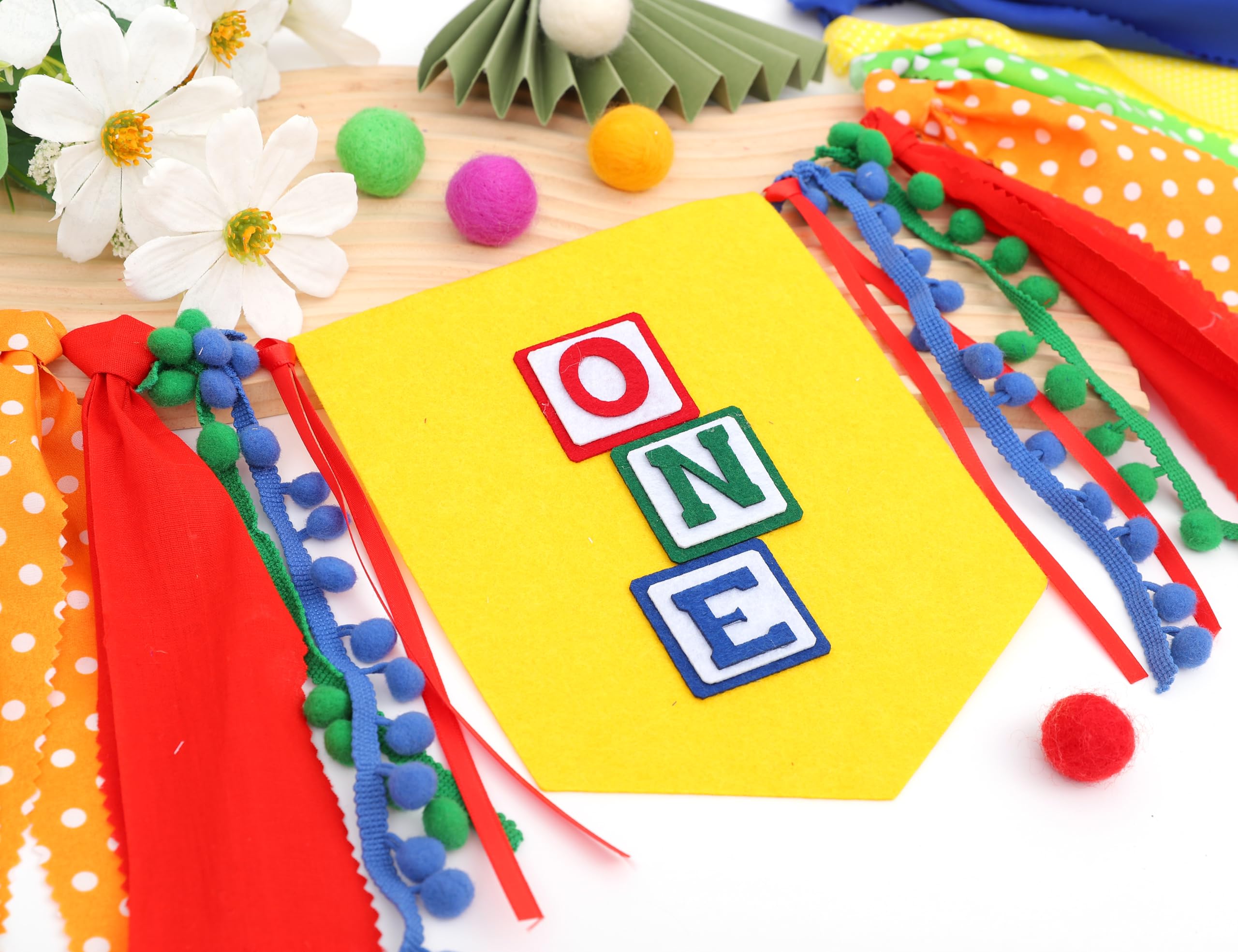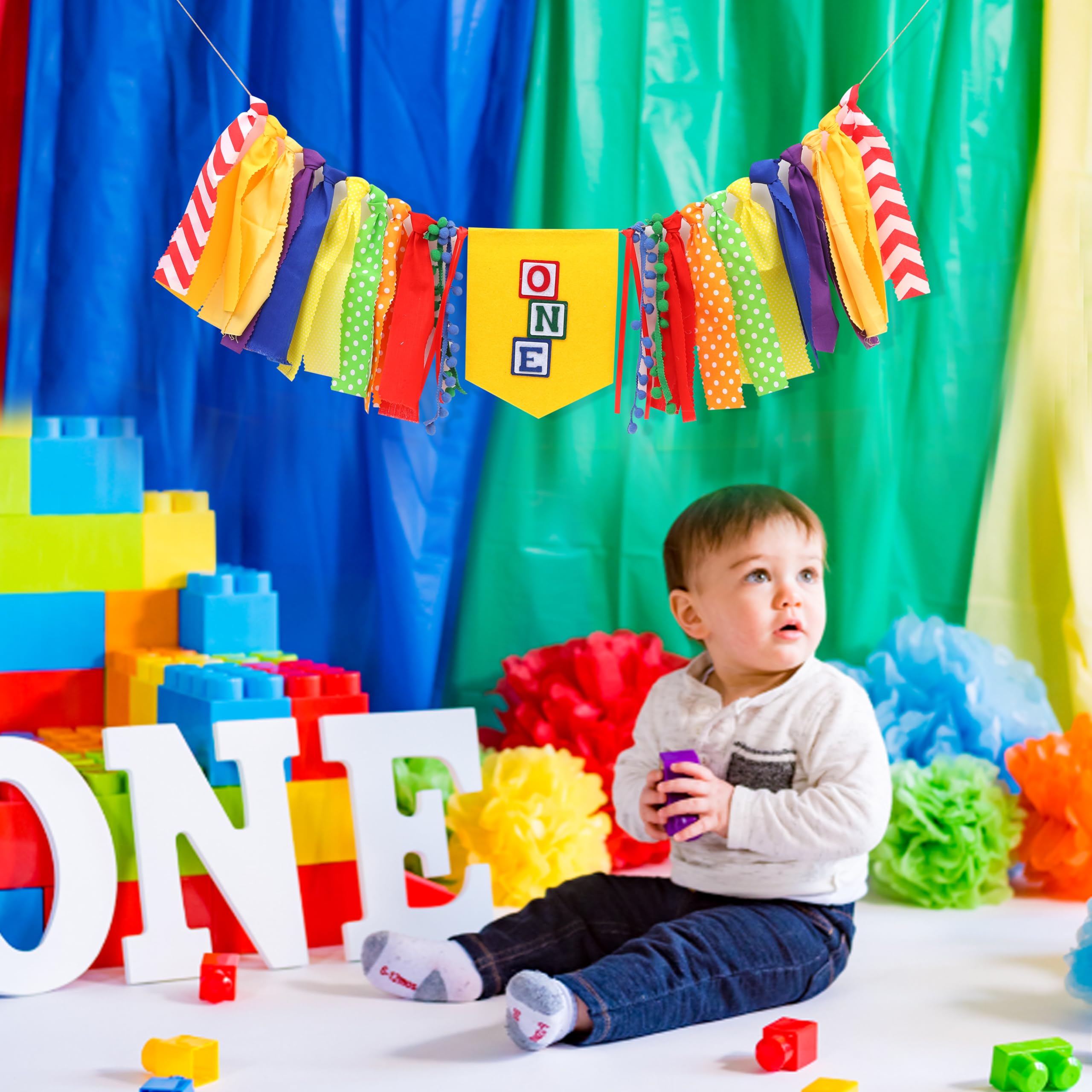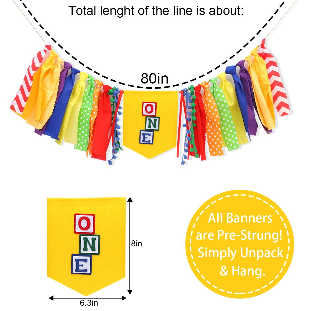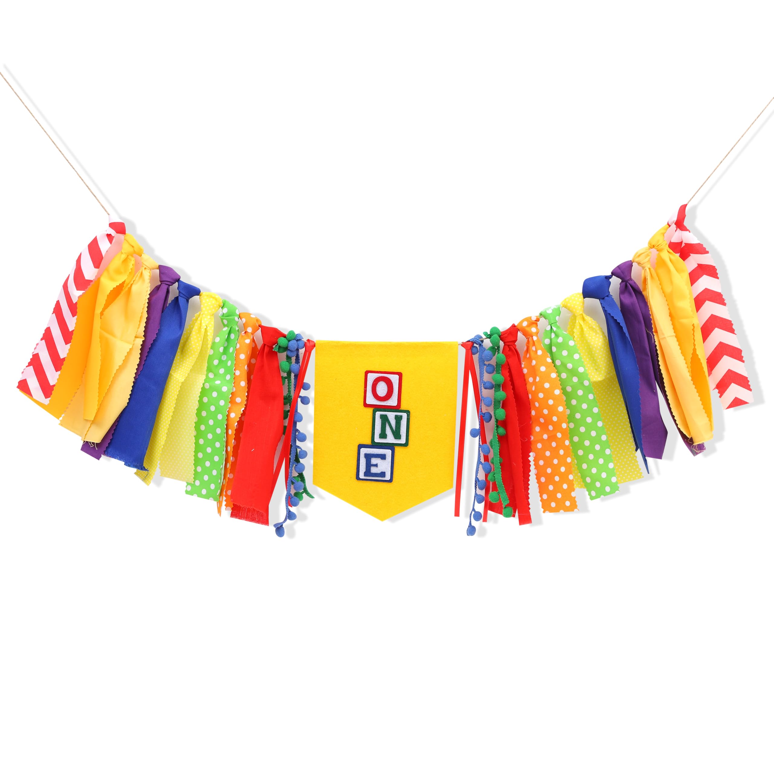 LETTER BLOCKS ONE BANNER: Rich colorful design makes this high chair banner stand out from the crowd of decorations bring more energy and charm to the party scene make the first birthday more exciting