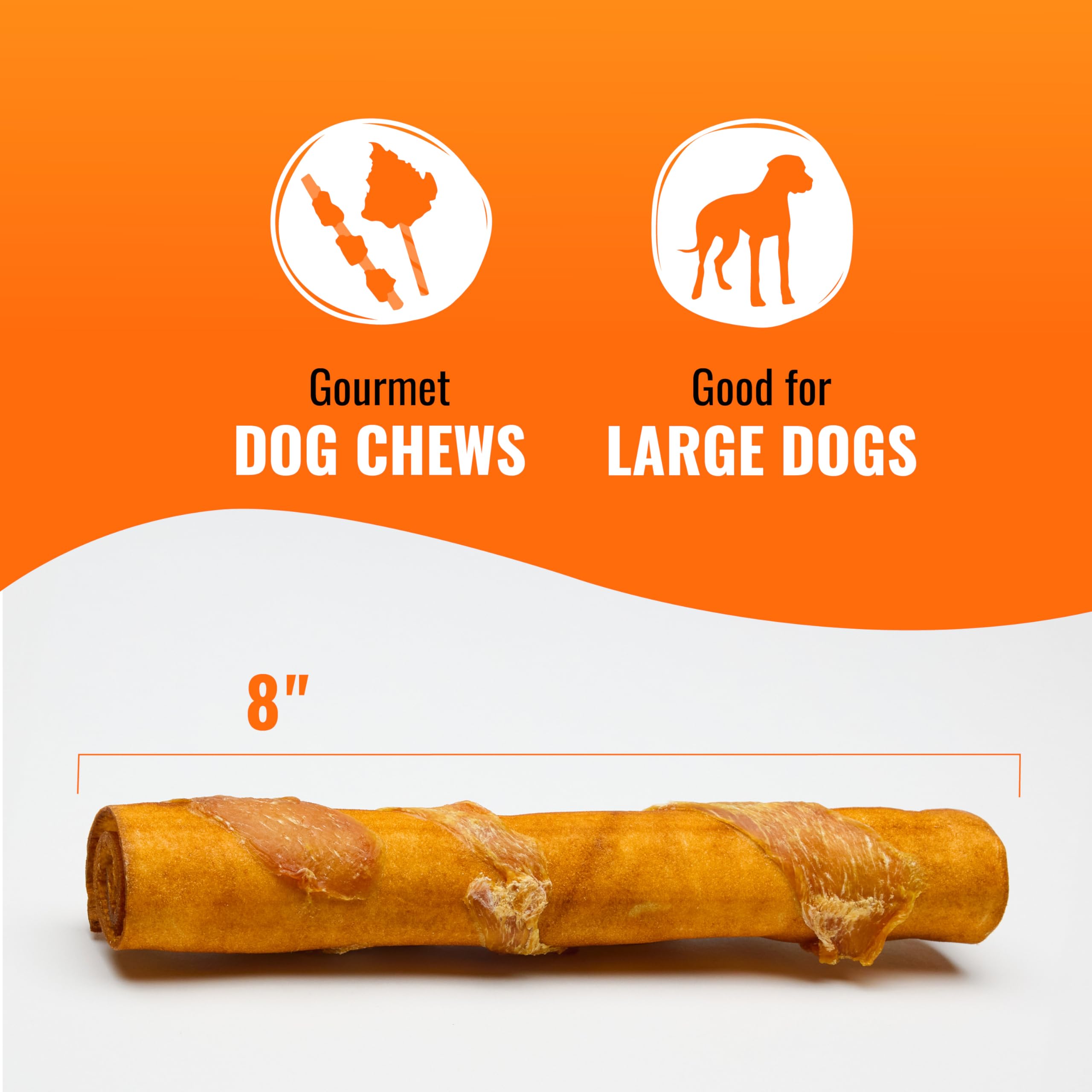 TRIPLE FLAVOR: Made from premium rawhide and delicious pork hide, then wrapped with real, savory chicken