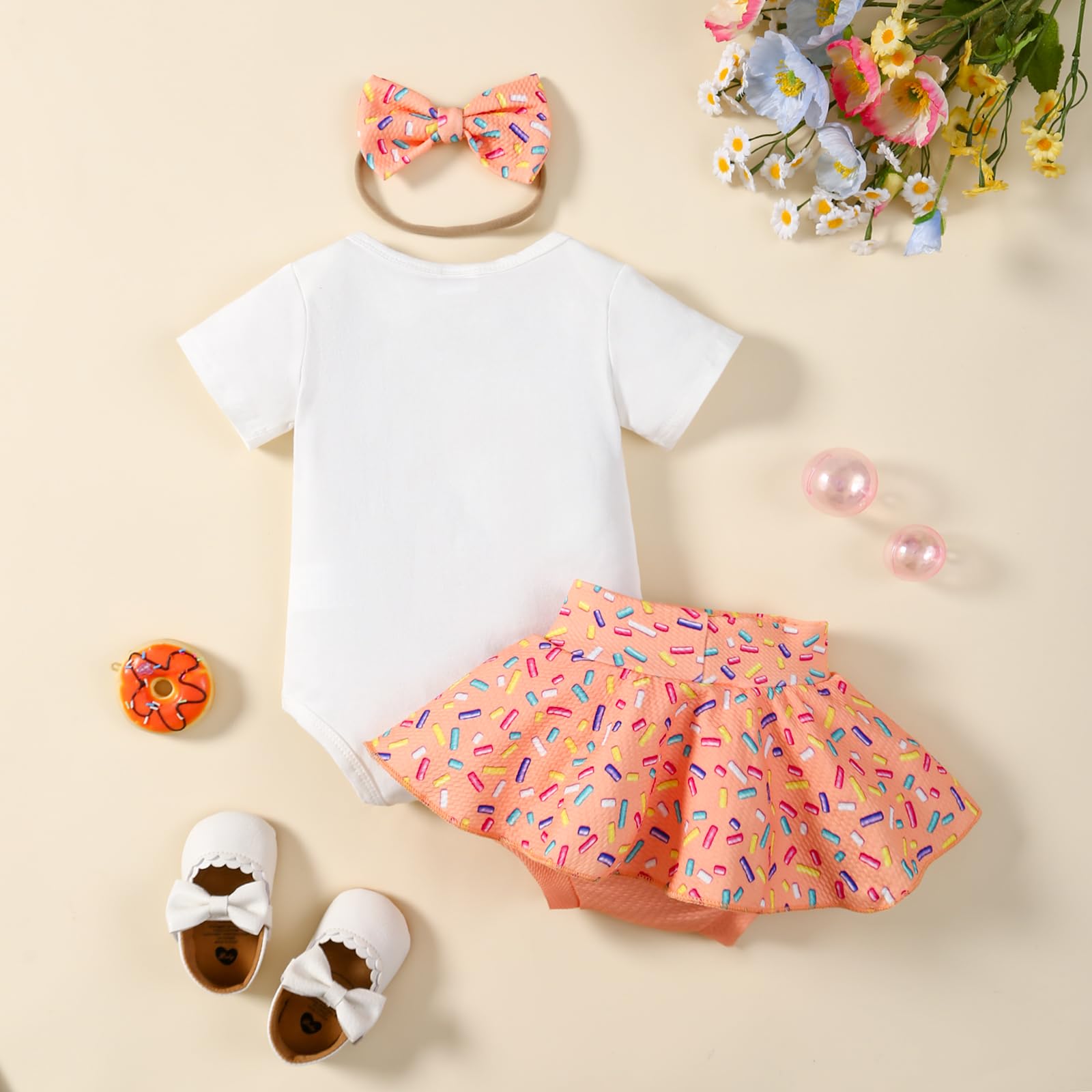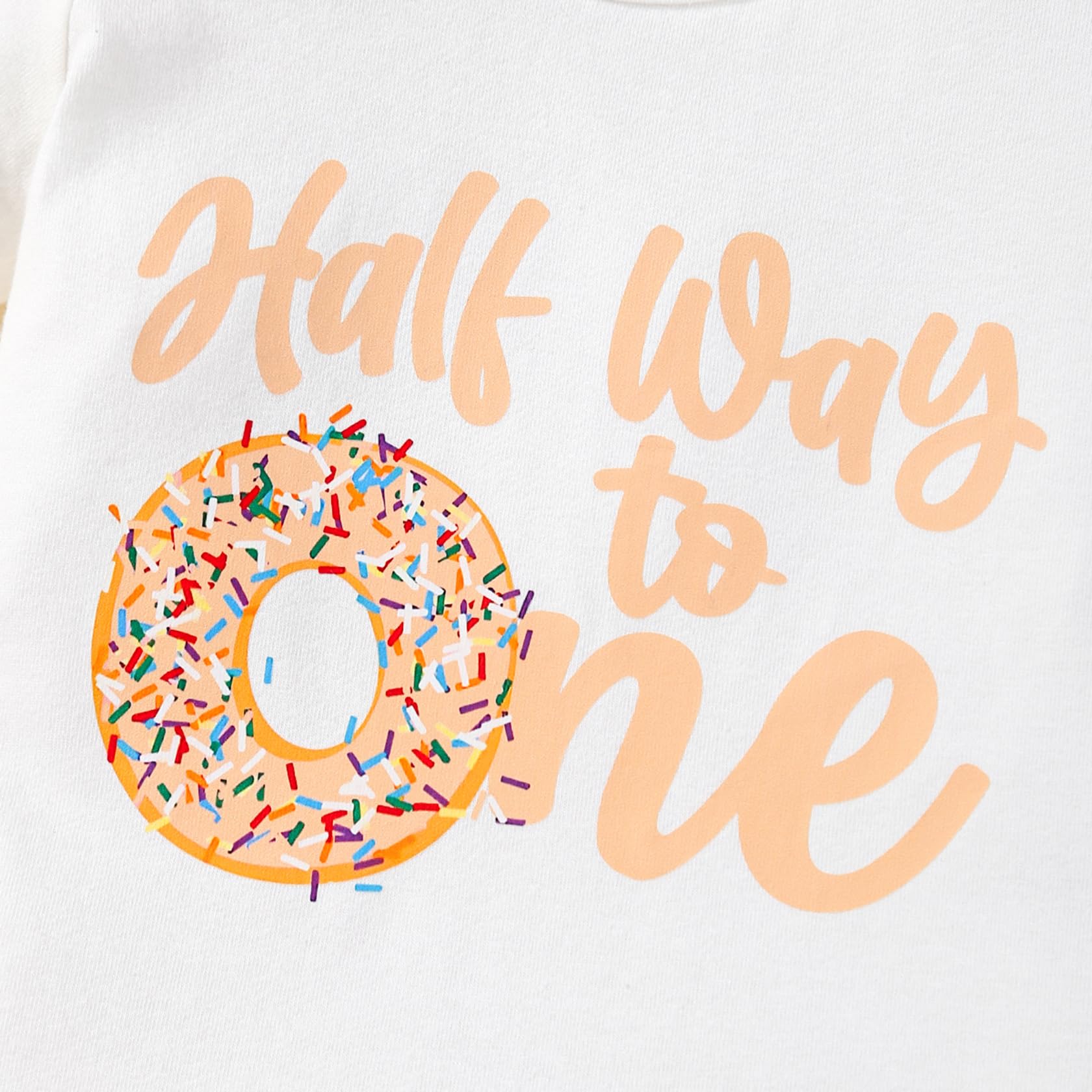 Design: stylish Half Way to One, with cute donut shorts, fun Half Way Around the Sun, with Sun print shorts. Best Gift for Darling's first birthday!