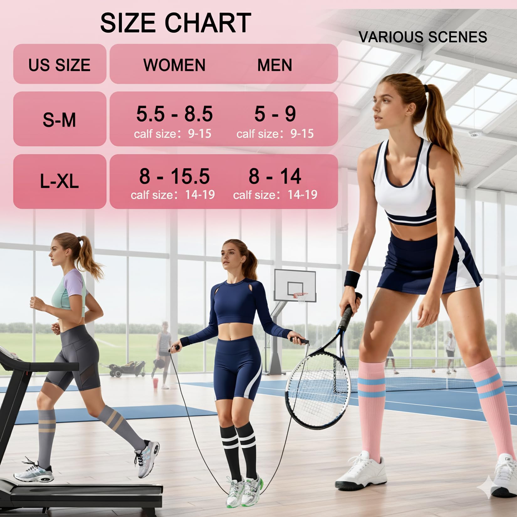 Compression for Leg Health– These knee-high socks deliver a balanced 15-20 mmHg compression from ankle to calf, promoting better blood circulation, reducing swelling, easing leg fatigue, and supporting vascular health—perfect for long work shifts, flights, and recovery.