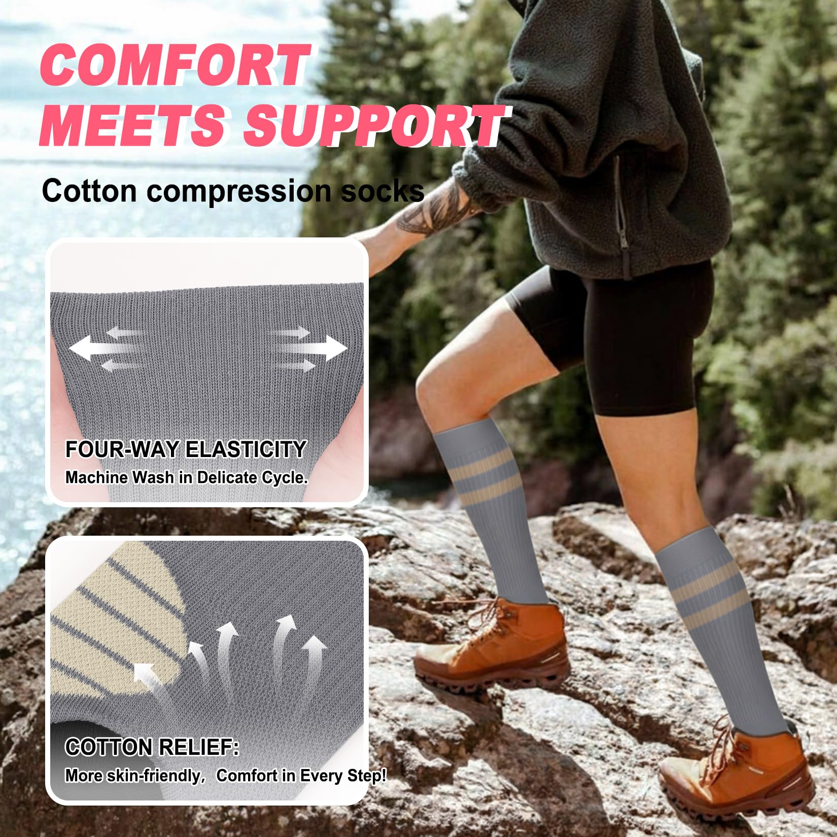 Soft Cotton Comfort with Cushioned Sole– Made with 80% breathable cotton, our compression socks offer a soft, skin-friendly feel that stays comfortable all day. The extra cushioned sole provides shock absorption and all-day relief, making every step feel supported and smooth—ideal for those constantly on their feet.