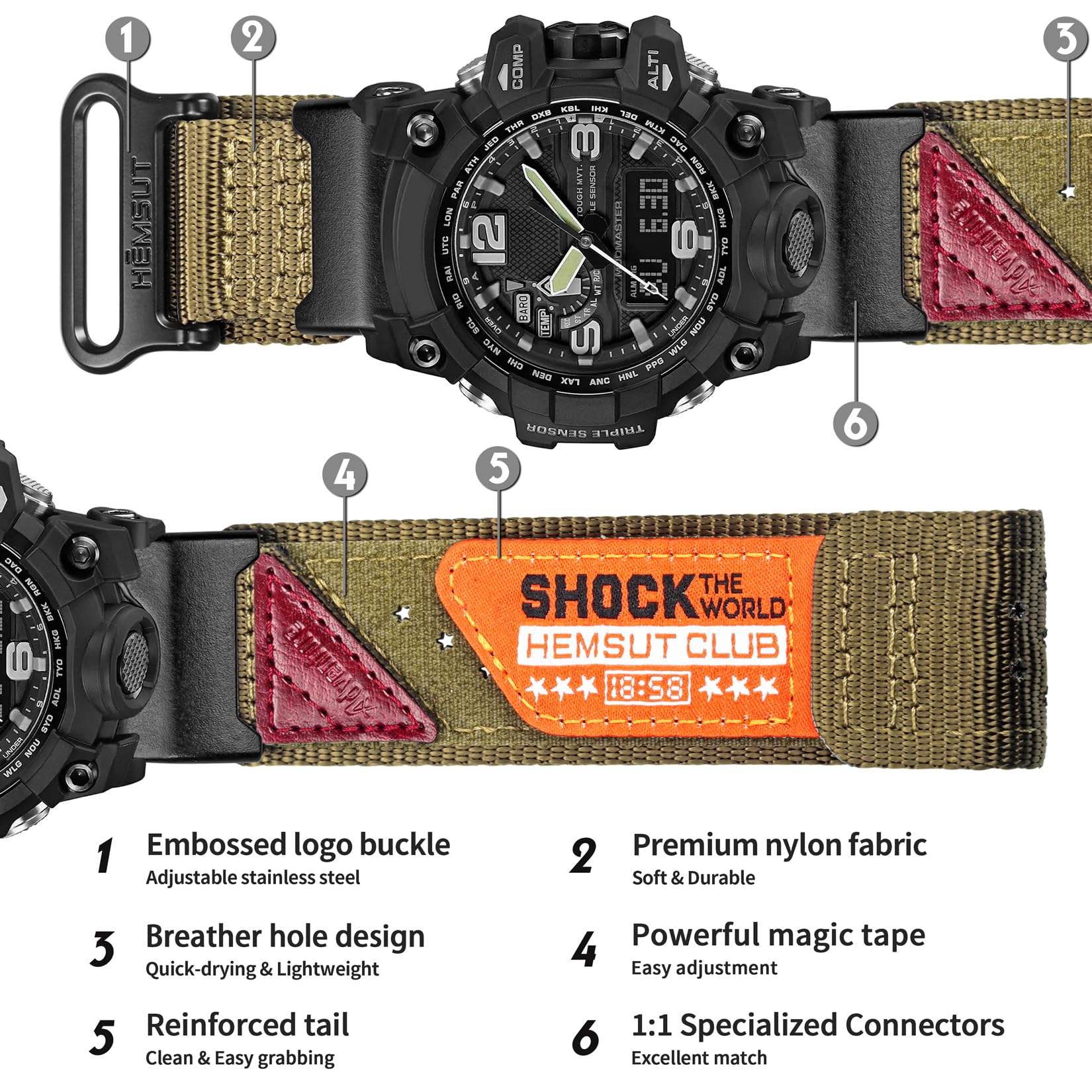 Nylon material: the strap is made of flexible, soft, high-quality nylon material. When worn, the skin-friendly nylon material conforms perfectly to the curve of the wrist. The soft nylon material is elastic at the wrist, close to the skin, breathable and comfortable to wear all year round.