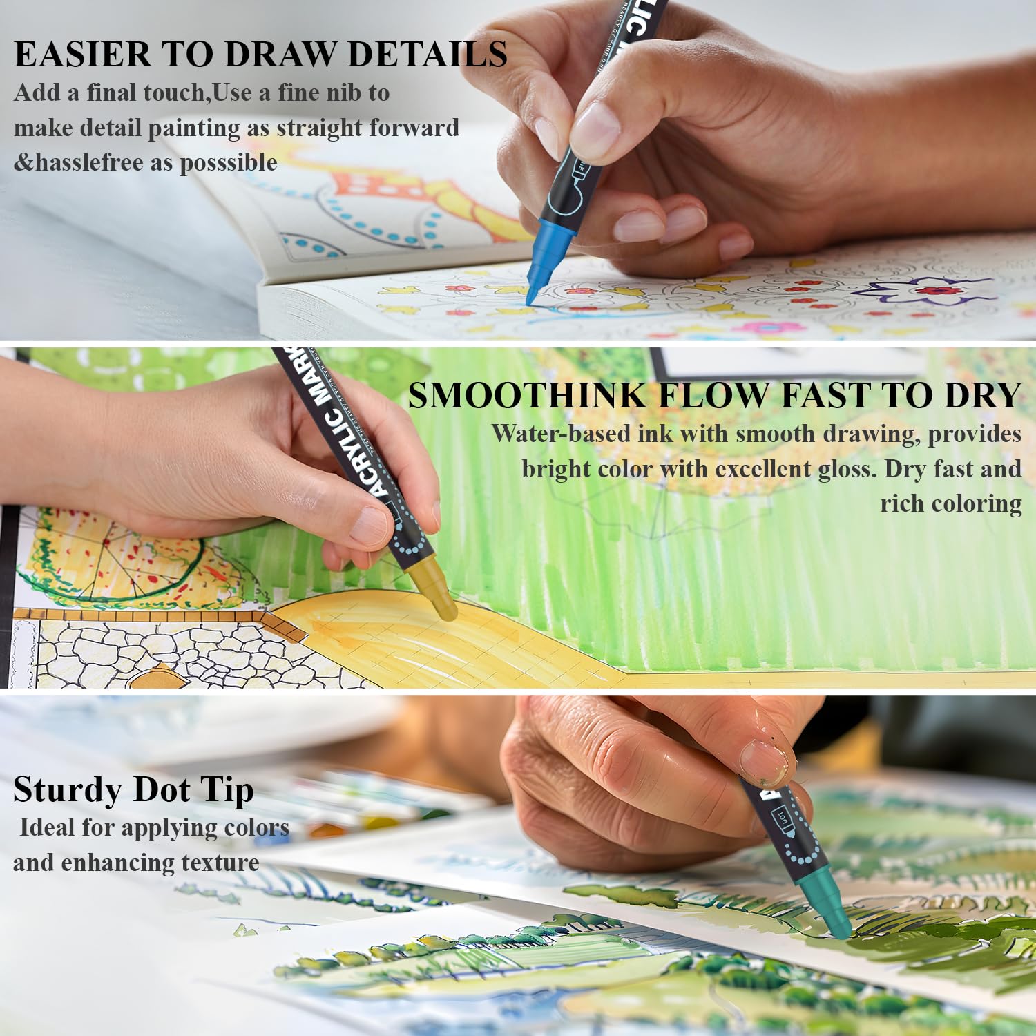 Quick-Drying and Smudge-Resistant Acrylic Marker: This acrylic marker dries fast to reduce smudging, enabling seamless layering. The acrylic markers set offers a water-based formula for smooth tone adjustments. Acrylic markers fine tip bring precise lines, while acrylic markers paint pens ensure superior coverage. Achieve smooth strokes with acrylic paint markers fine tip.