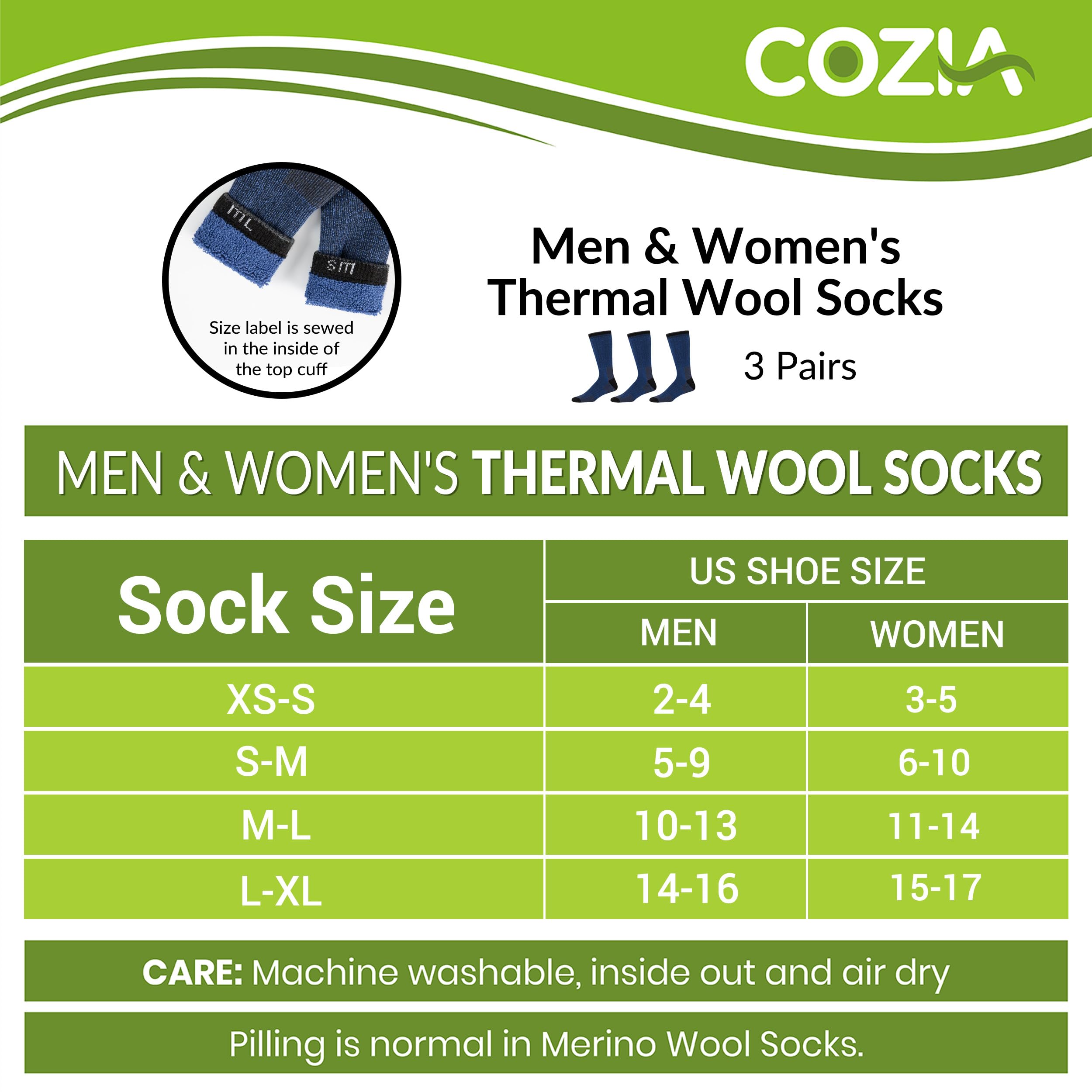 COMFORT FOR YOUR FEET - Serving as excellent merino wool socks for men and women who like the warmth of wool socks without the itch, these thick merino wool socks will trap in body heat in chilly winter conditions. Made with the finest-quality Merino wool, COZIA luxurious womens and mens wool socks are super-soft, protect the feet from abrasion, provide cushioning from sudden impact.