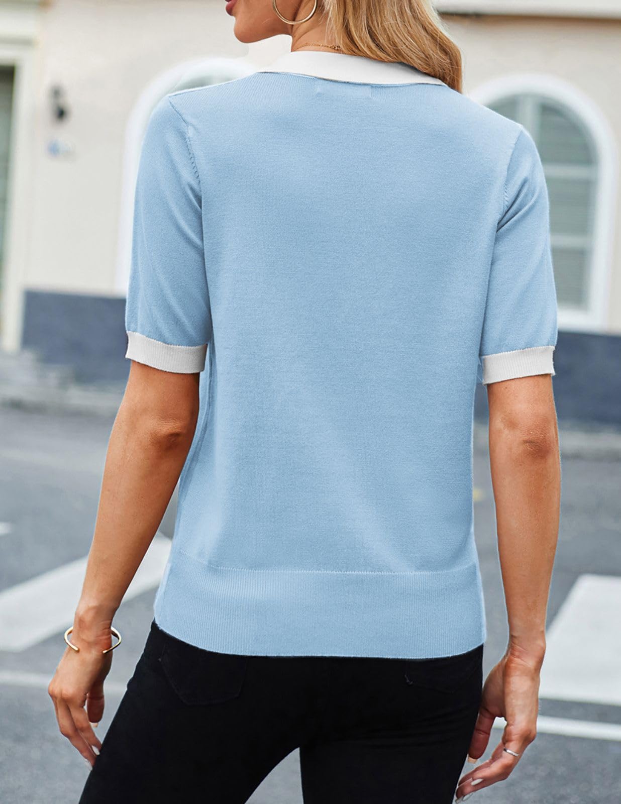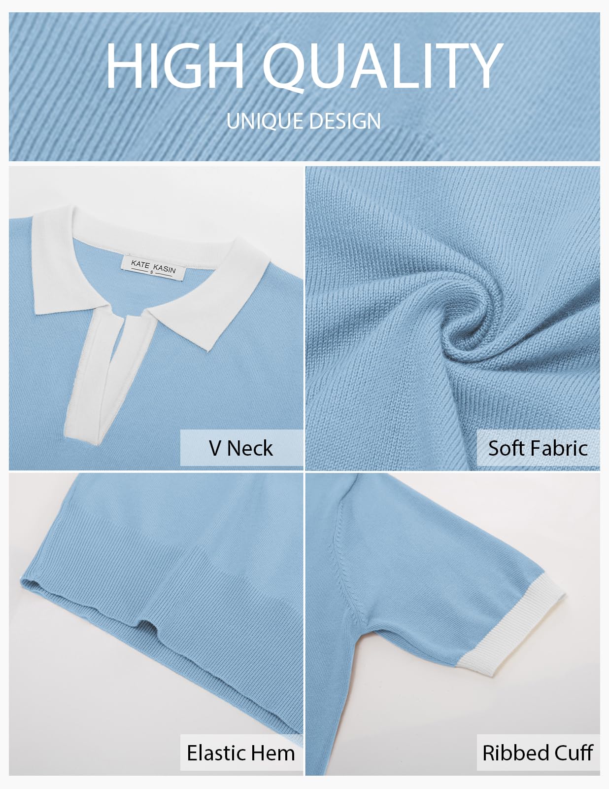 Features: V-neck short-sleeved, loose, casual, color block, ribbed knit pullover. The classic lapel sweater never goes out of style