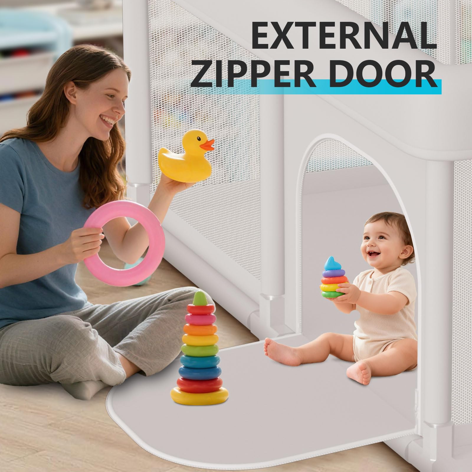 【360° All-Vision Design】:Breathable mesh design provides a 360°viewing angle, freeing the mother's hands at any time, mom can do her own thing at any time, external zipper design prevents the baby from accidentally running out of baby play pen.