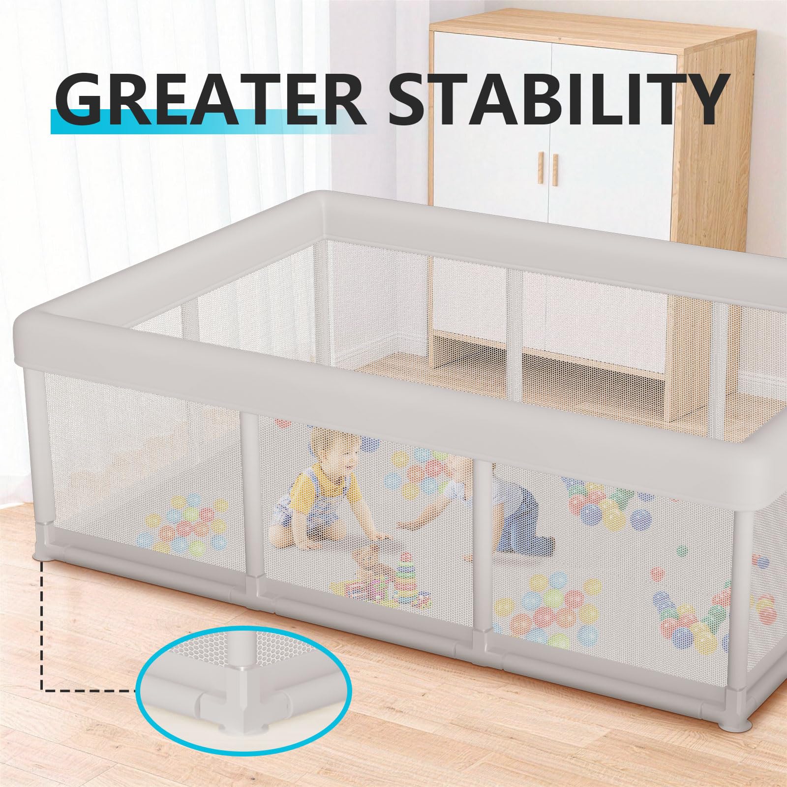 【SAFE PET-FREE】:Our toddler playpen will be a pet-free safe place for any baby and pet family, 10 non-slip suction cups are designed for extra stability, and can sticks securely to the floor, so your baby won't tip over the pen and cause danger.