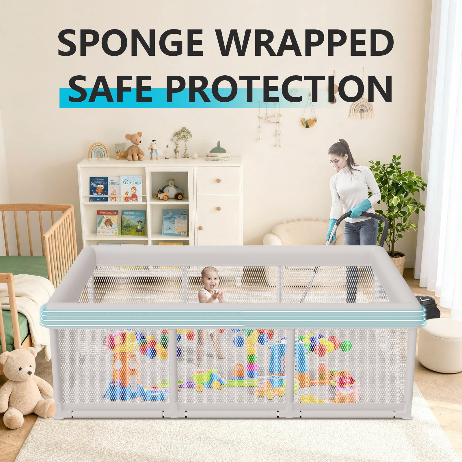 【Safe Anti-Collision Design】: Our playpen is made of non-toxic encrypted 320D Oxford cloth, which has passed the US CPSIA test, and the connectors are covered with thickened foam, which increases the cushioning and effectively prevents injuries caused by collisions.