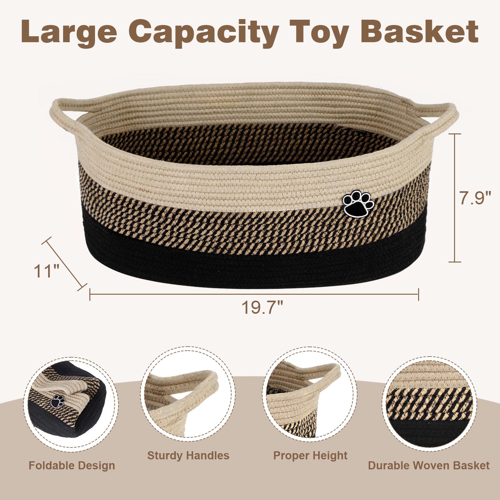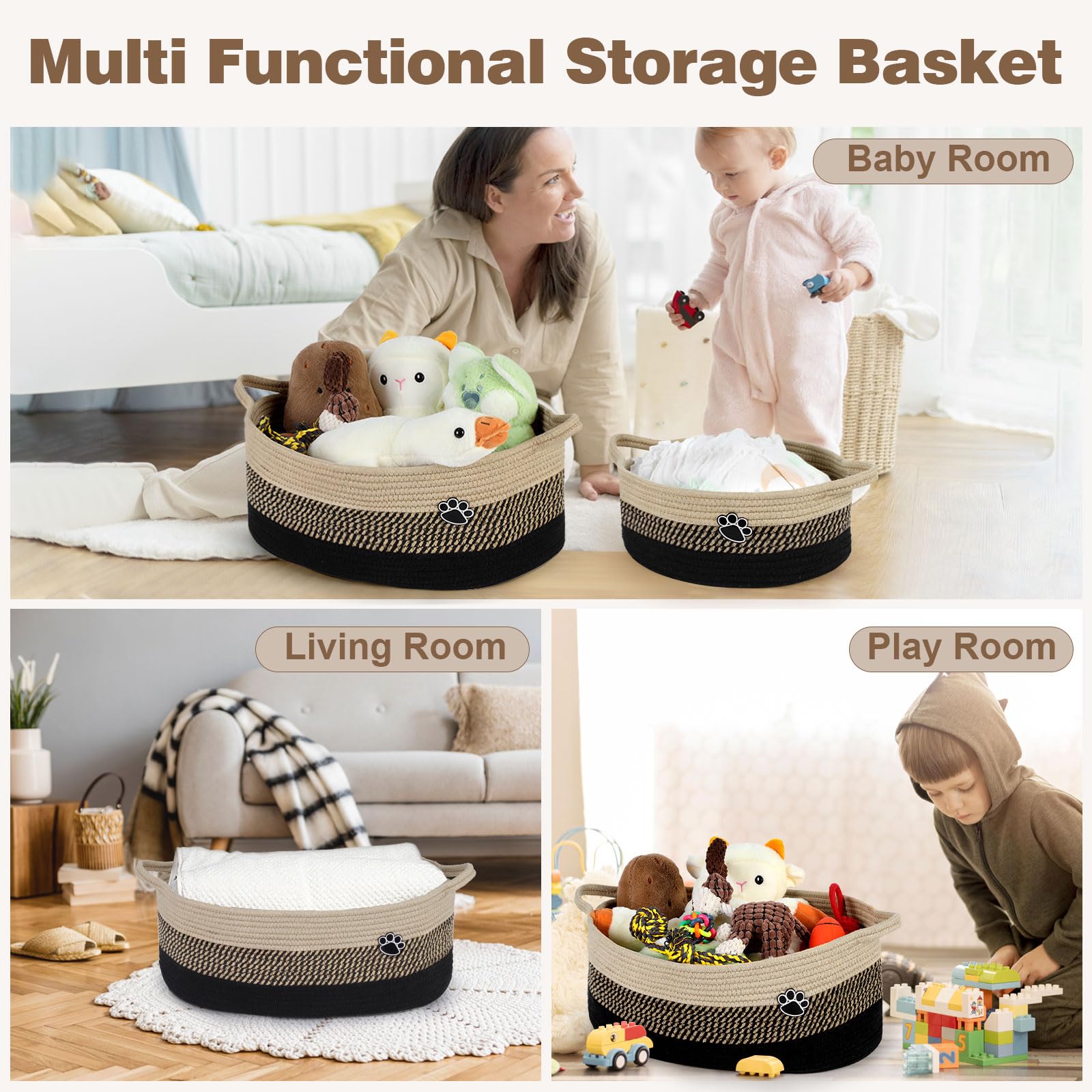 Versatile Storage Basket: This dog storage box can not only hold many of the pet's supplies, but also store clothes, blankets, towels, toys, and more. Suit for using in the living room, bedroom, and other room