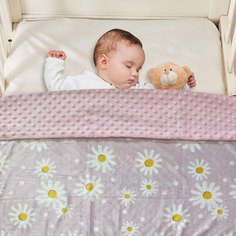 【Unique Design】 Baby Blanket for Girls double layers design can keep your baby warm in cold weather and it is right weight without being too havy to be hot. Besides, the design allows it to be used in both sides, the minky side can be used for wrapping your little one keeping your baby warm in winter. The other side has three-dimensional dots that can pacify your baby like gentle caressing from a mother, and help your baby fall asleep quickly.