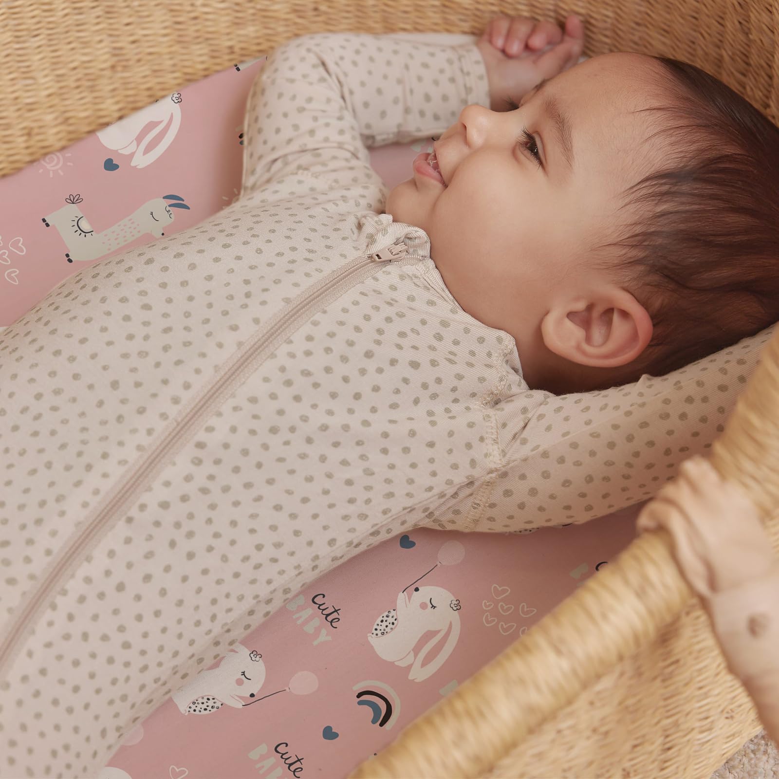 BREATHABLE & COMFORTABLE BASSINET SHEETS:Crafted with breathable fabric, these bassinet sheets help regulate your little one’s temperature, keeping them cool in summer and warm in winter. Perfect for nurseries, daycares, or home use, these bassinet sheets ensure a comfortable sleep surface for your baby.