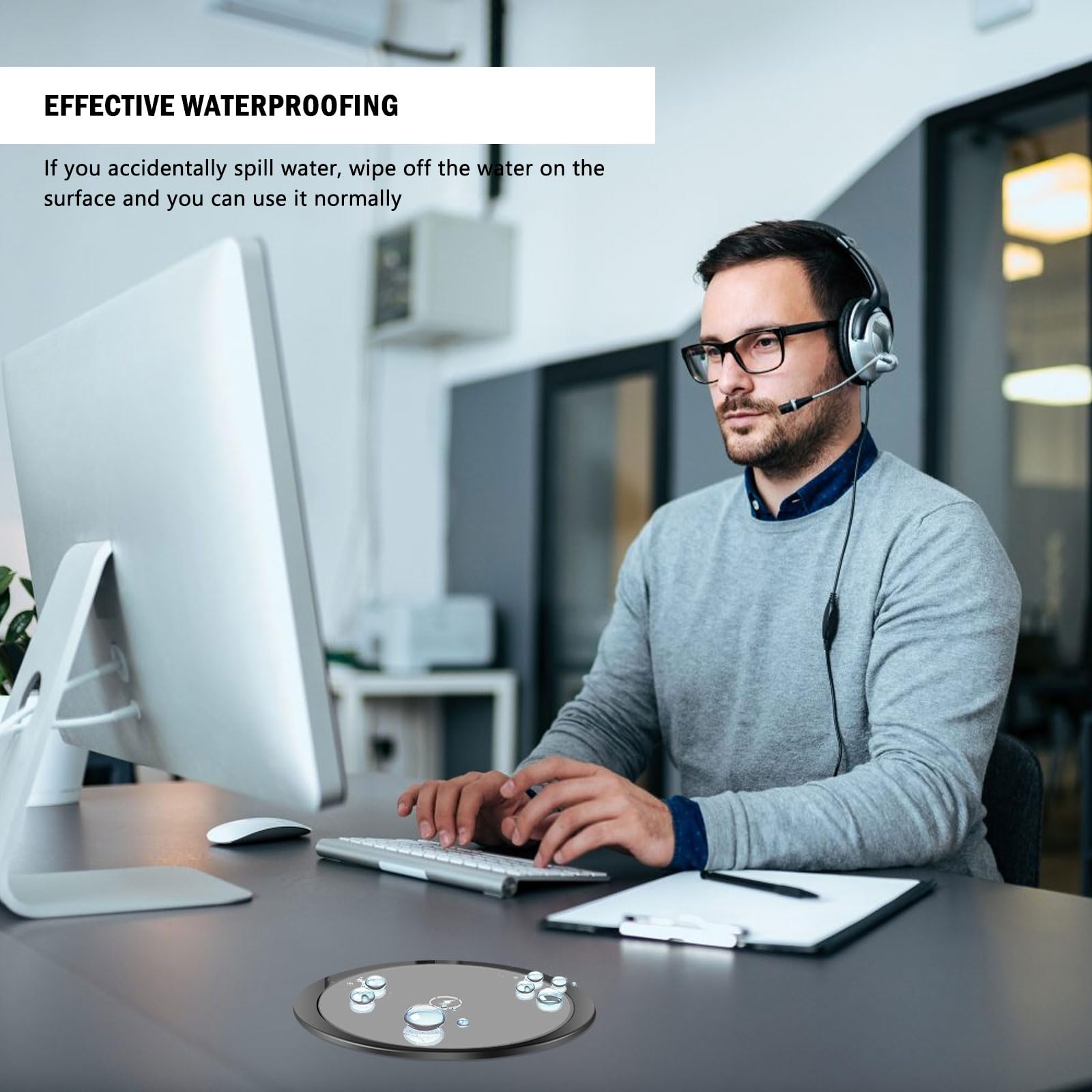5:Splash Resistant Pop-Up Countertop Receptacle:If you accidentally spill water,wipe off the water on the surface and you can use it normally.Made of refined hardened scratch-resistant PVC plastic. product has FCC certification There is a protective film on the organic glass at the top For brightness, the film can be peeled off