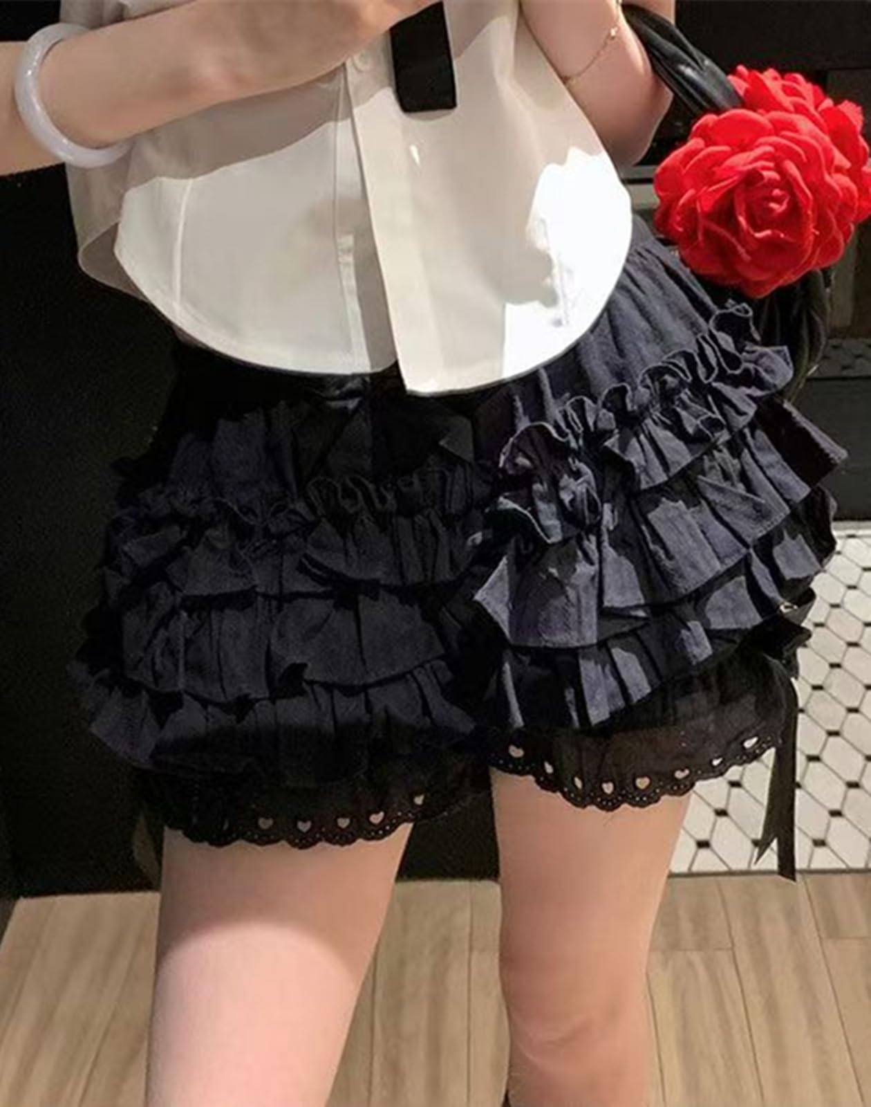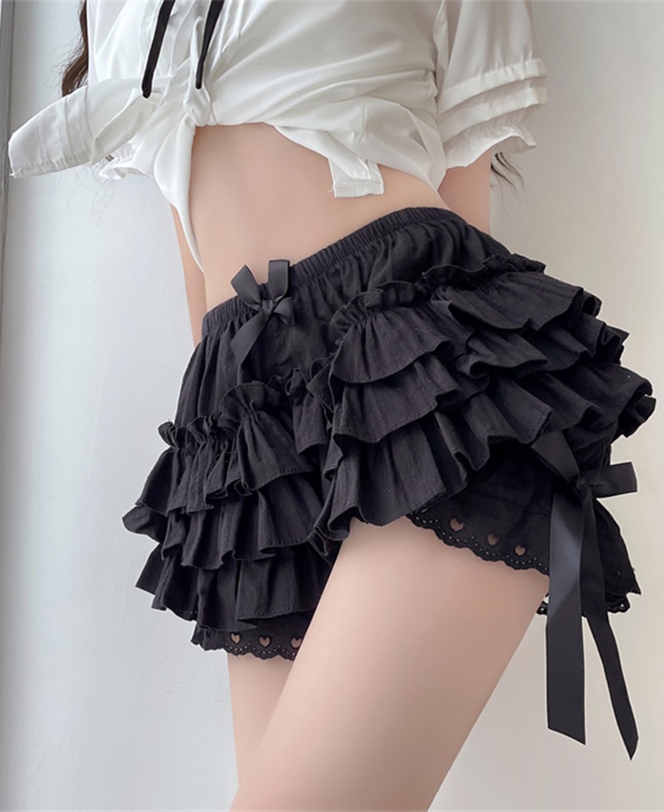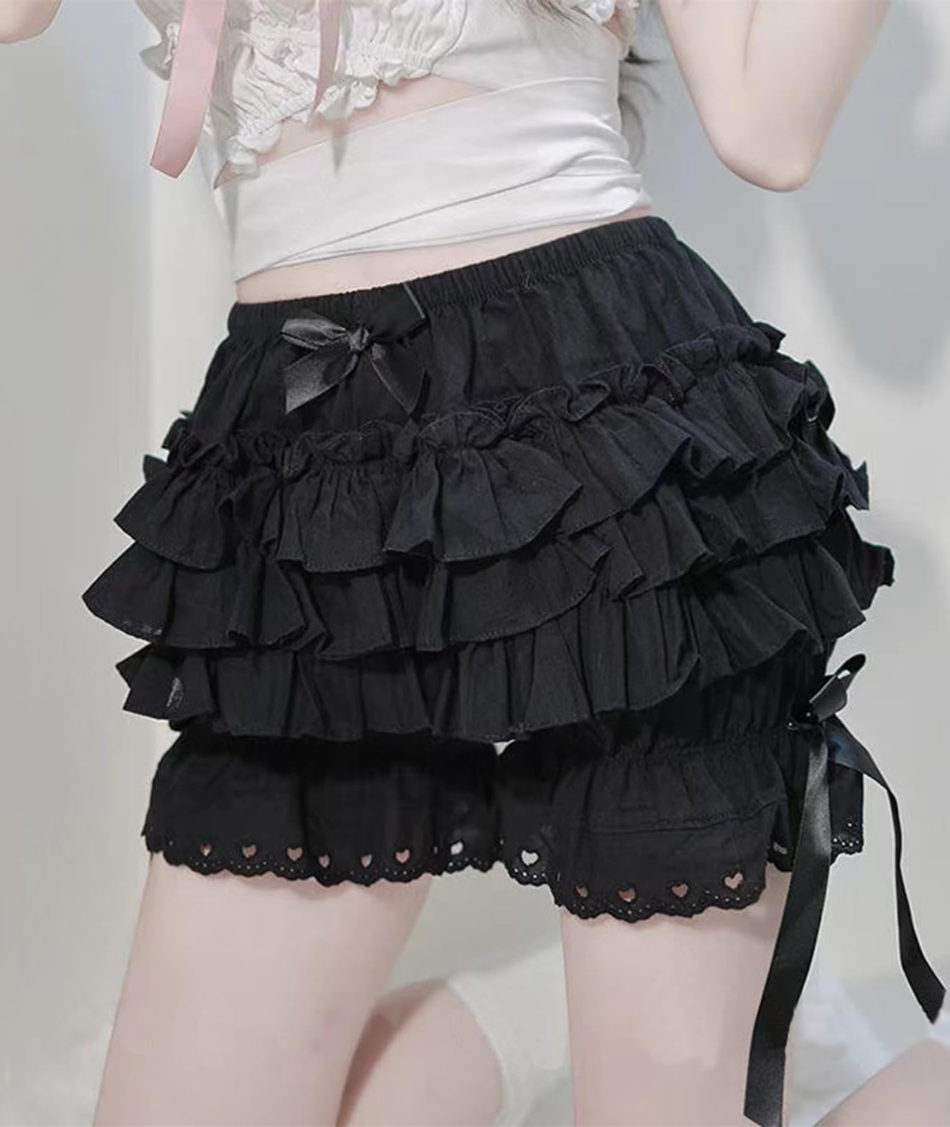 Lolita design: No pocket. Layered ruffle design, sweet cute, kawaii y2k bloomers, fairycore grunge