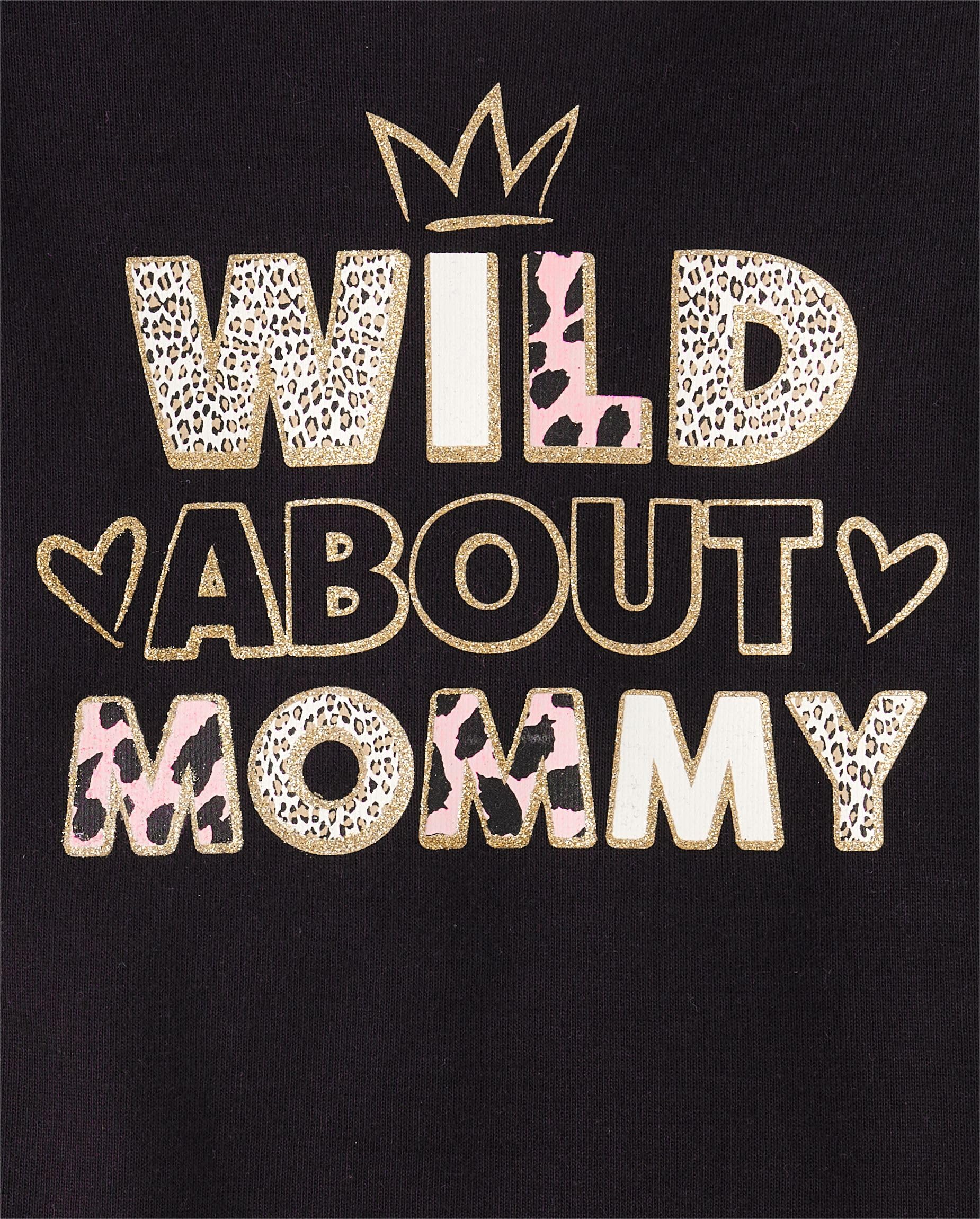 PAJAMA TOP: 1 'wild about mommy' top, 1 leopard top; rib-knit crew neck, long sleeves