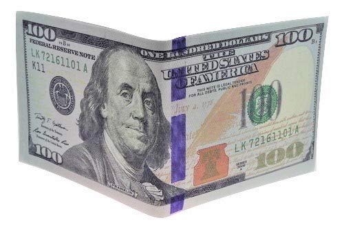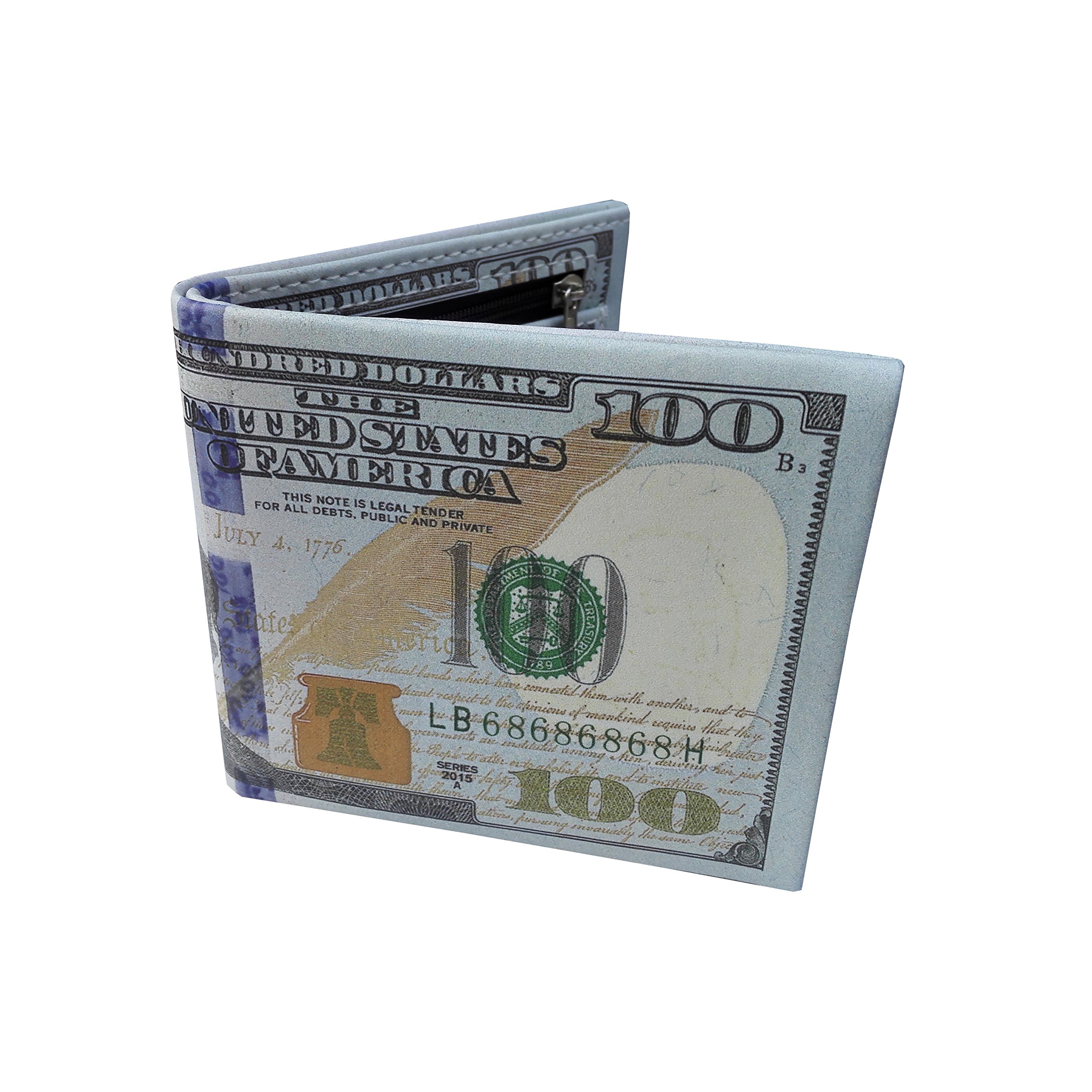 Zugar Land $100 Money Wallet. One Hundred Dollar Bill Printed Bi-Fold, Large (7.5") Funny Big Bucks Novelty