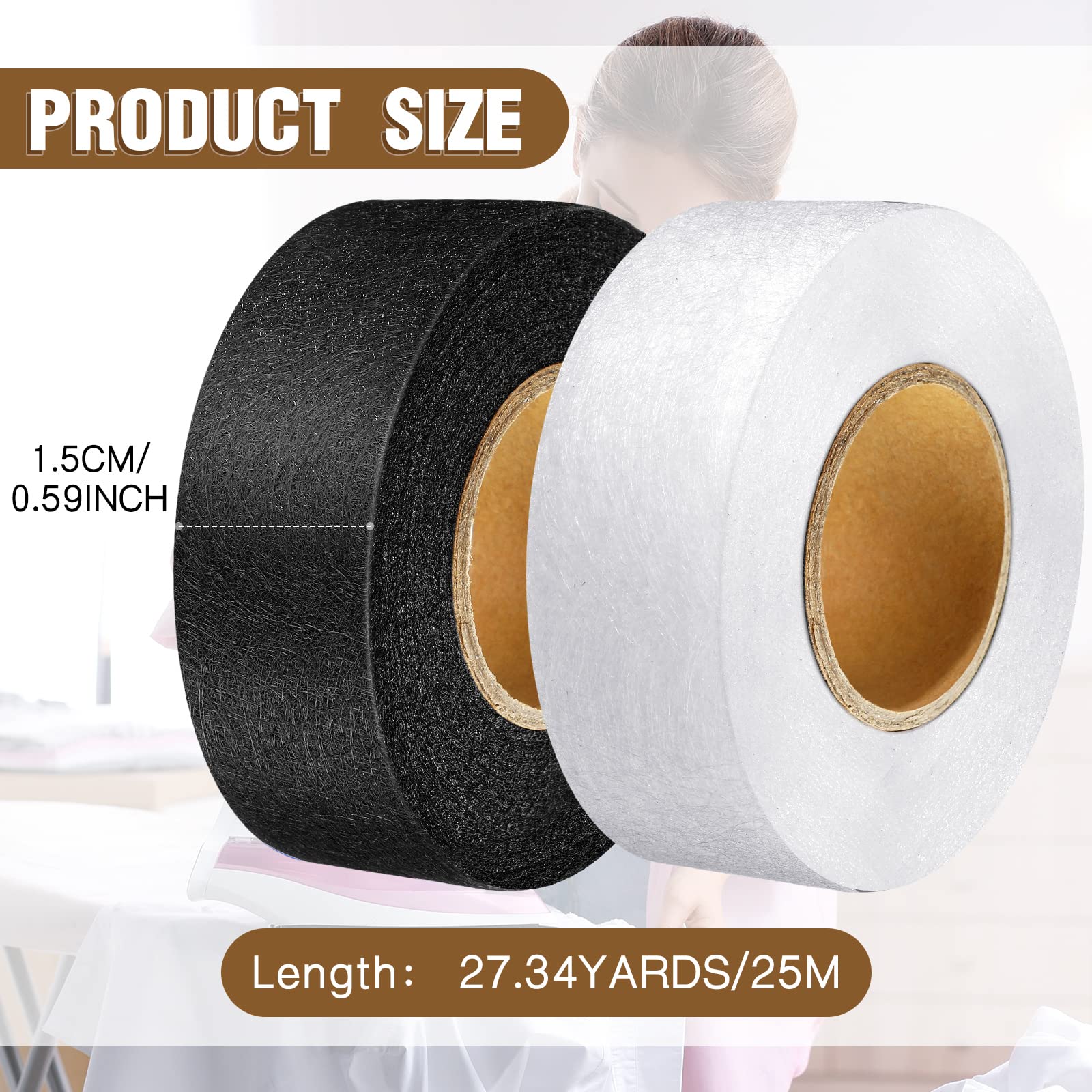 Fabric fusing tape:hem tape width is 1/2 inch, length is 27 yards, 2 rolls of hem iron-on tapes, good for hems, no sew pillow cases, double backing ribbons and curtains, sufficient length for your daily use and replacement needs