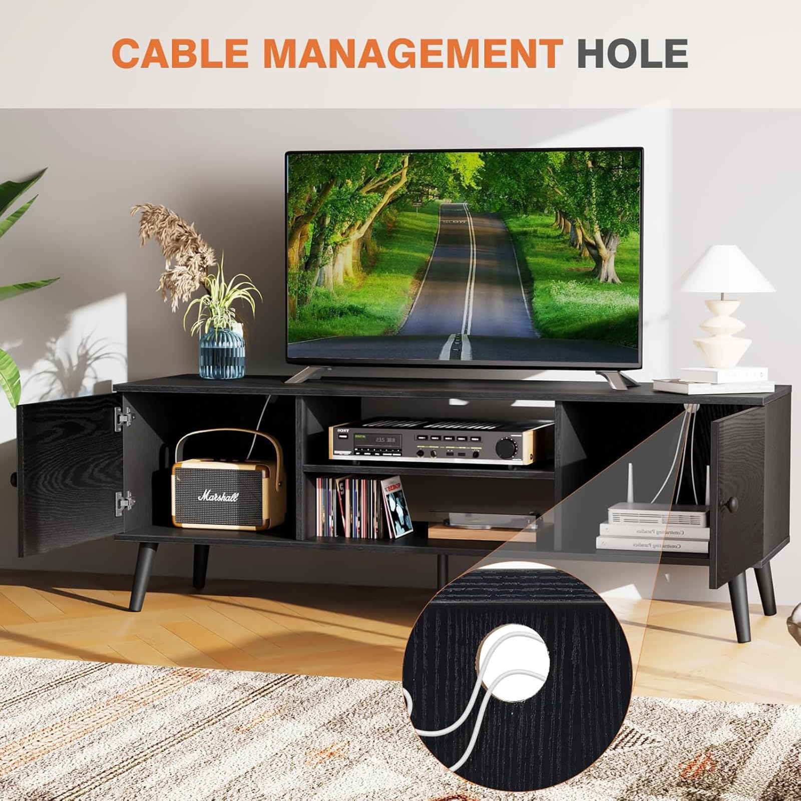 Soft Hinges & Cable Management: Equipped with 2 cabinets, this TV table offers ample storage space for home items. The soft hinges on the cabinet doors can be adjusted (tightened or loosened) to ensure a secure closure. Each cabinet has a cable hole at the back, allowing you to place game consoles, routers, or other devices while hiding their cables, keeping the area neat