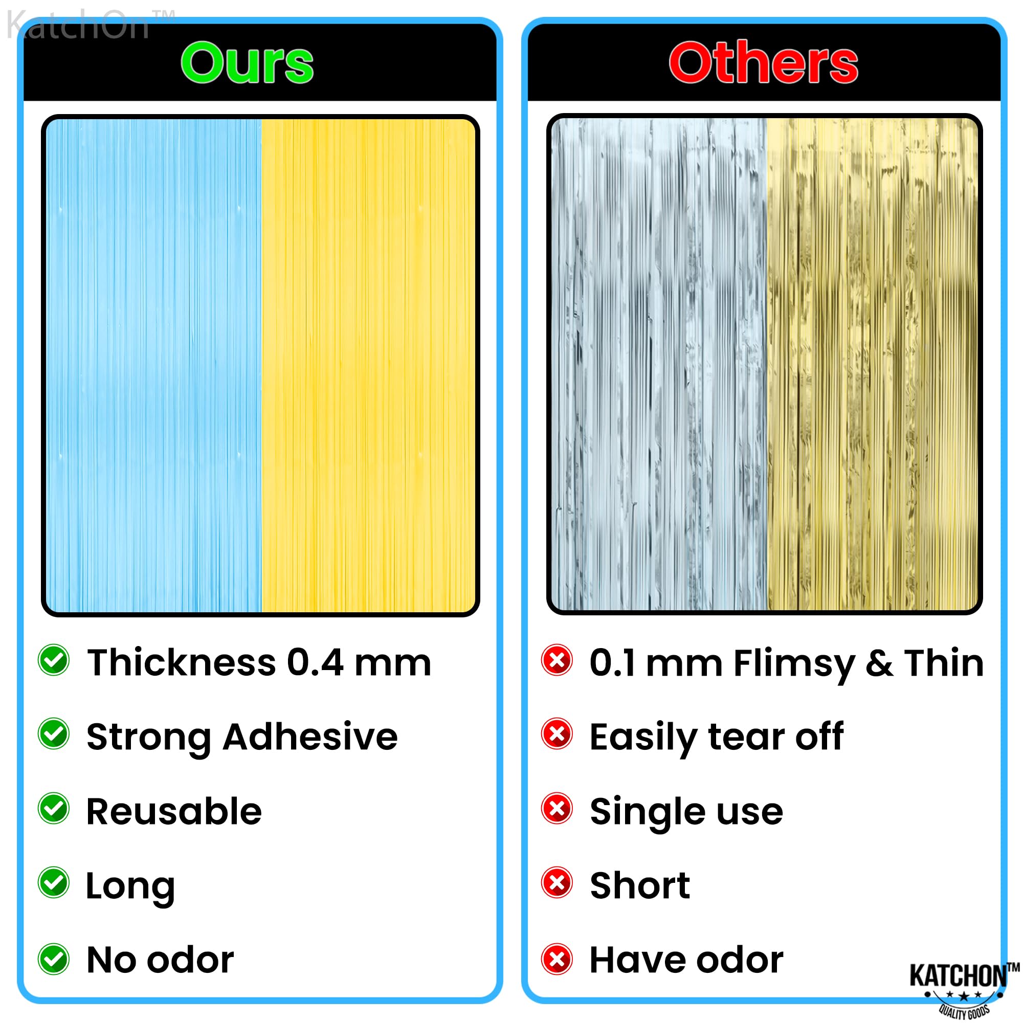 ELEVATE YOUR EXPERIENCE : Make your celebrations extra special with our light blue and yellow party decor. Made from Grade A Foil Materials. This pastel blue and yellow fringe curtain as easter backdrops is designed to create a colorful atmosphere for any occasion. Elevate your experience with blue and yellow fringe backdrop or easter fringe backdrop for easter decorations, baby shower decorations, ocean themed party decorations, easter party decorations and princess decorations for birthday party.