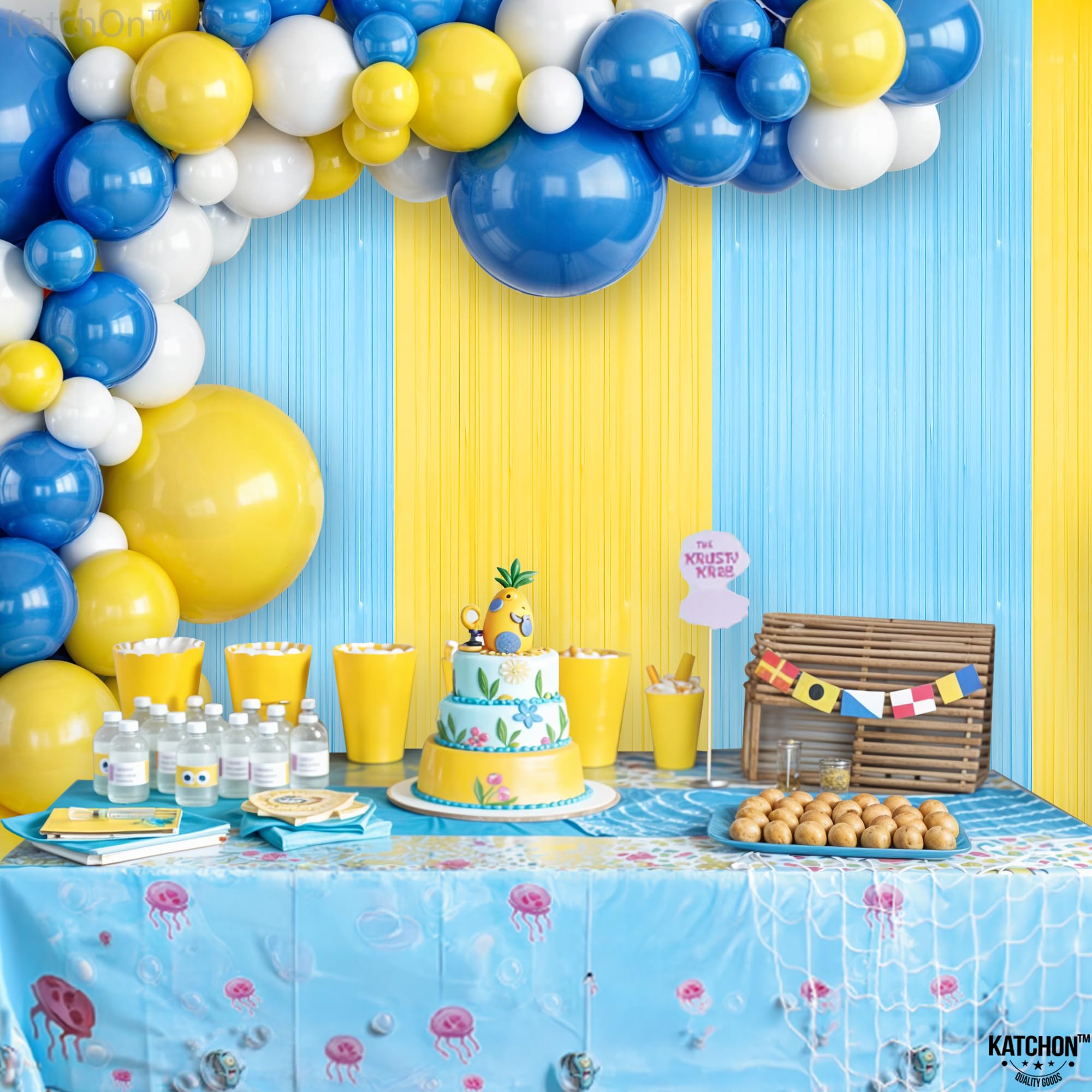 STURDY | DURABLE | REUSABLE : Add some color and sparkle to your sponge birthday backdrop with this sturdy and durable blue and yellow birthday decorations. ideal it's made to last and can be reused for multiple events like easter egg backdrop or easter themed birthday party. You can be sure that this easter foil fringe curtains will be a wonderful addition to your easter birthday party decorations, sponge birthday party decorations.