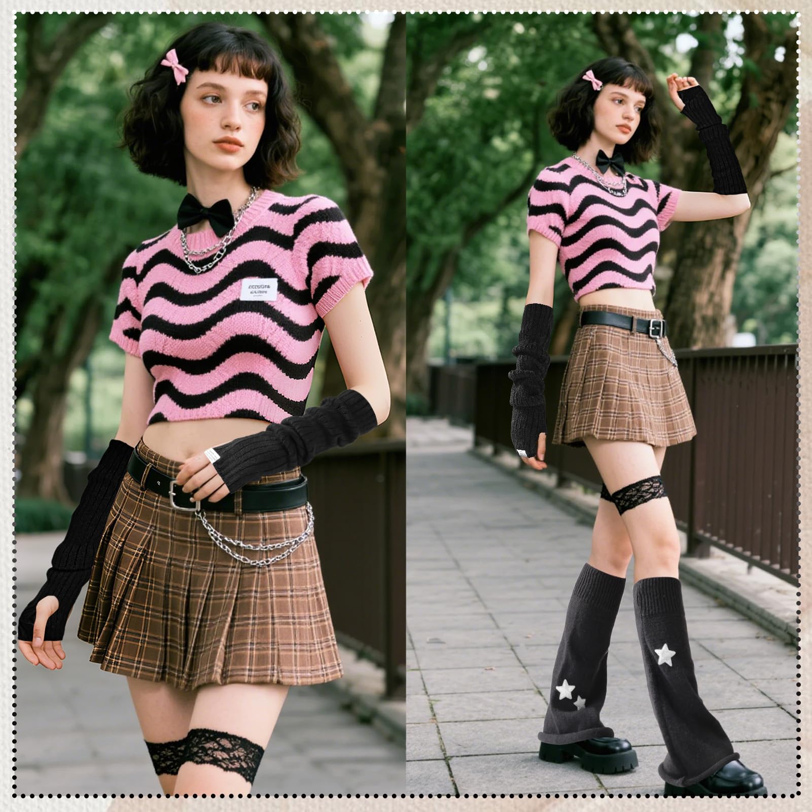 【VERSATILE FASHION STATEMENT】Elevate your outfit with these Harajuku-style knitted arm sleeves. They pair effortlessly with gothic, JK uniform, lolita dresses, sweaters, or coats—perfect for concerts, conventions, travel, or daily streetwear
