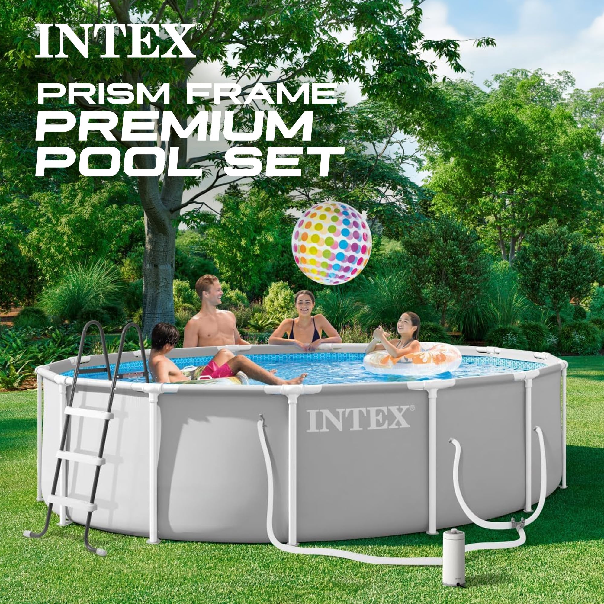 ✔ DESIGNED TO FIT ANY BACKYARD – The 26719EP Prism Frame is the pool you need for friends and family to enjoy time together this summer, with a spacious 14ft x 42in round frame design and an 3,357 gallon water capacity.