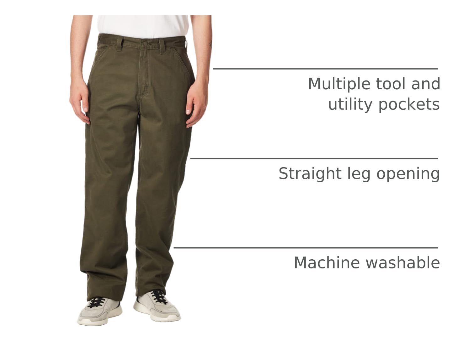 Description Carhartt's washed twill dungaree combines all-day comfort with long-lasting toughness. constructed of 9.25-ounce, 100% cotton ring-spun washed twill with a relaxed-fitting seat and thighs, it sits slightly below the natural waist. well outfitted, it includes multiple tool and utility pockets, a left-leg hammer loop, and two reinforced back pockets. the leg openings are sized to fit over boots.