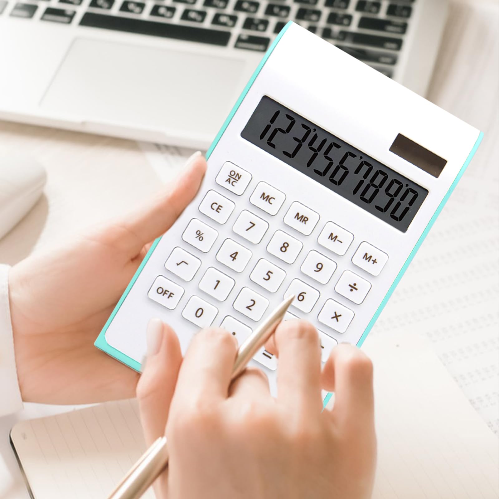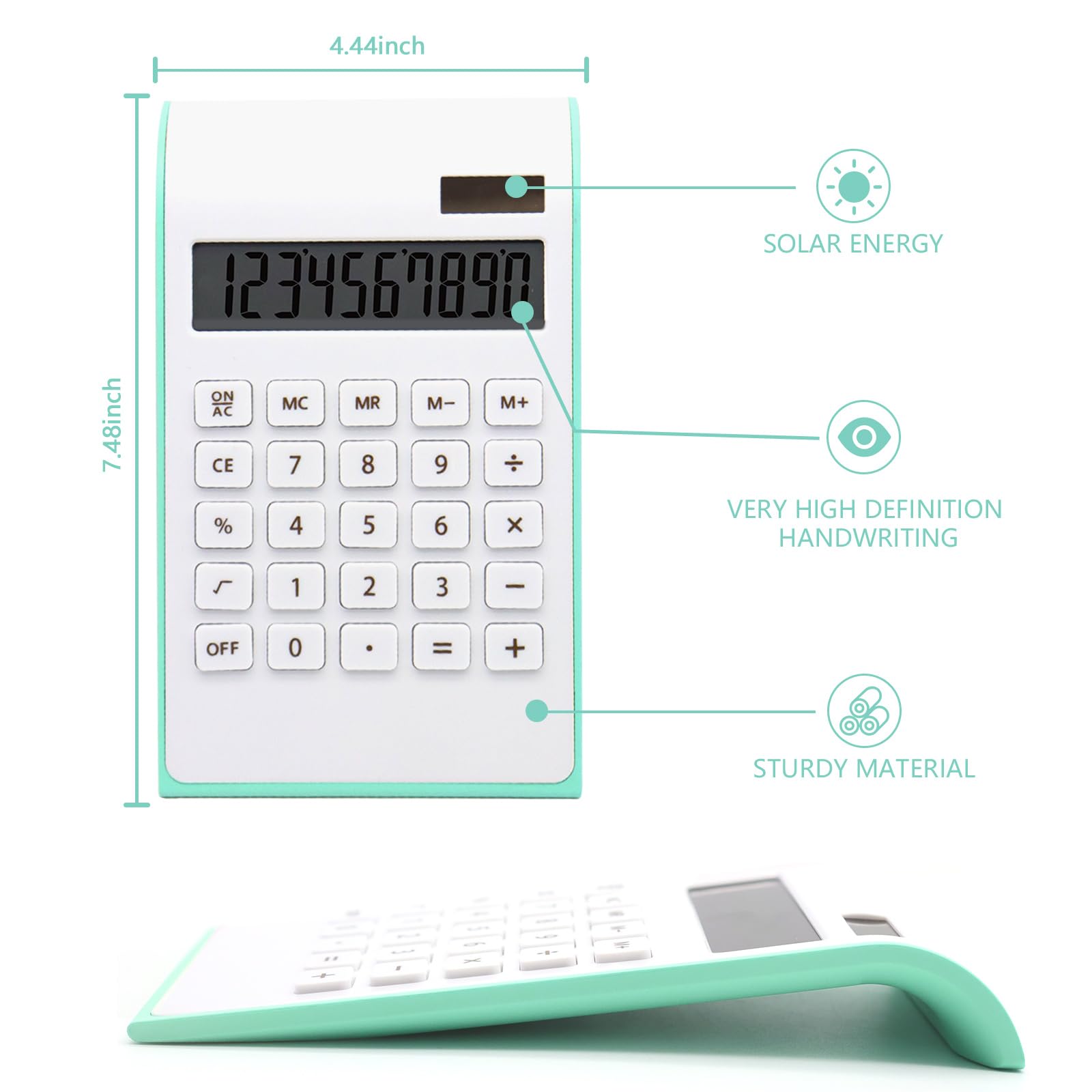 Teal Calculator, UPIHO Green Office Supplies and Accessories, 10 Digits Solar Battery Basic Office Calculator, Dual Power Desktop Calculator with Large LCD Display, Teal Office Supplies