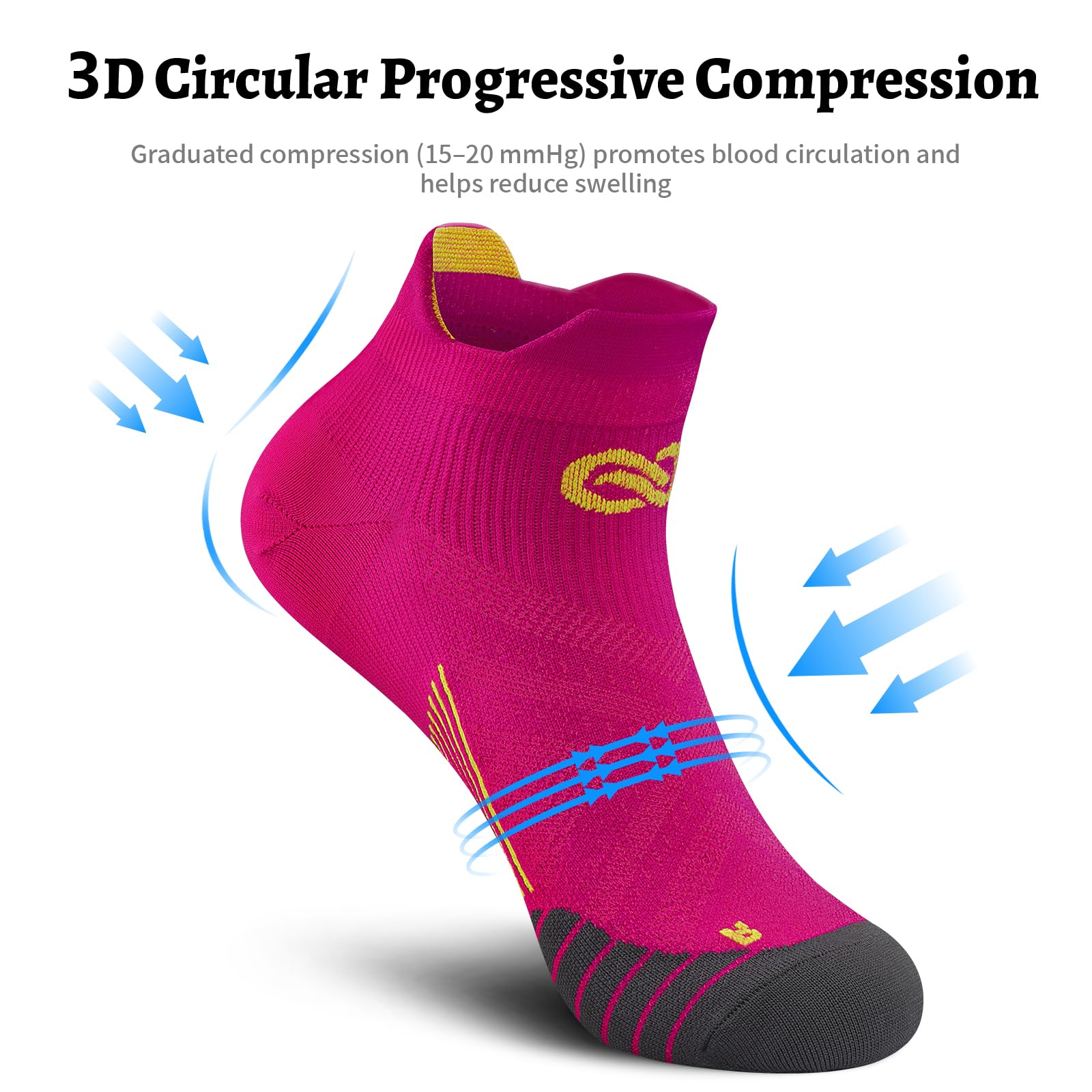 [360 PROTECTION FOR YOUR FEET] The no show compression socks with 3d circular progressive pressure design provide you with permanent all-around protection, ensure your feet at the right angle to reduce sports injuries while providing ankle support