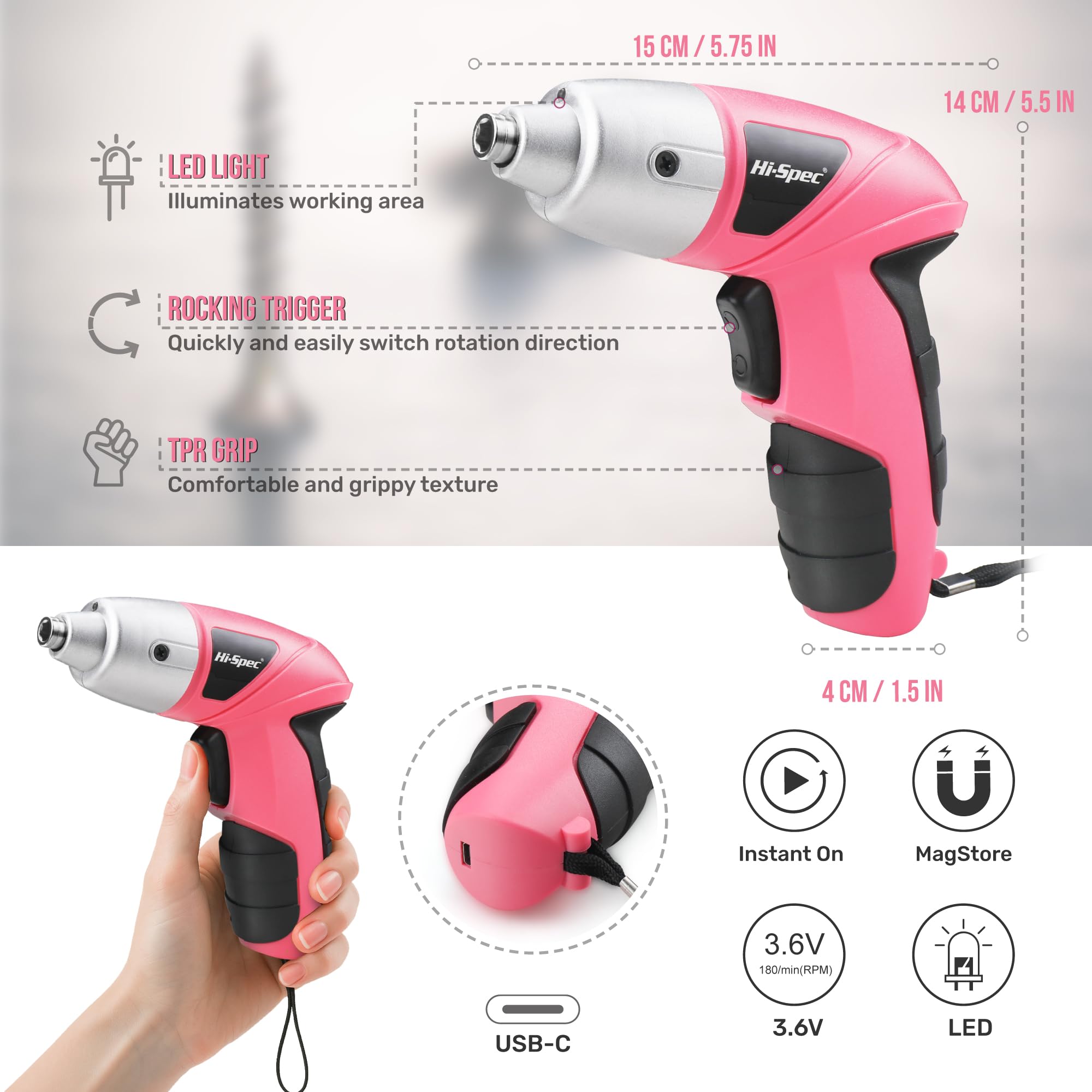 Pink Electric Power Screwdriver: Tackle a variety of household tasks with this convenient cordless automatic screwdriver; designed for screwdriving tasks only, NOT suitable for drilling