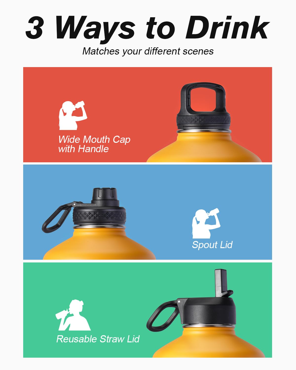 Travel Longer: With 128 oz large capacity, the large water bottle allows you to enjoy your trip easier with fewer refills, perfect for hiking, camping and sport events. It's easy to stay hydrated and refreshed on exciting adventures with such a versatile bottle.