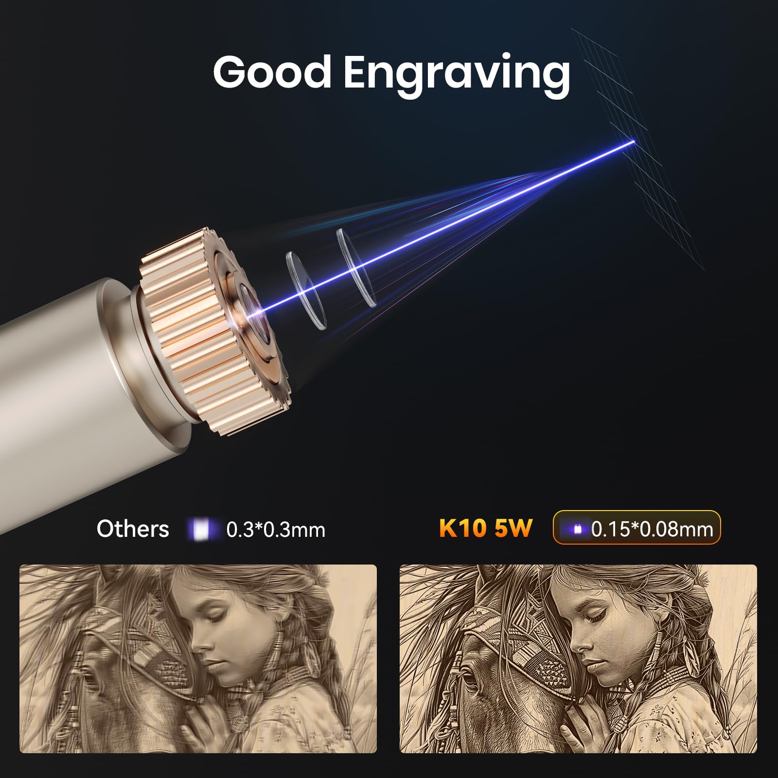 【Reliable Quality & Warranty】K10 5W laser engraver comes with a 12-month warranty and undergoes 100% quality testing before shipping. Design personalized tumblers, phone cases, and fan-inspired accessories effortlessly—with free software. Turn ideas into unique keepsakes, gifts, or side hustle projects in minutes.