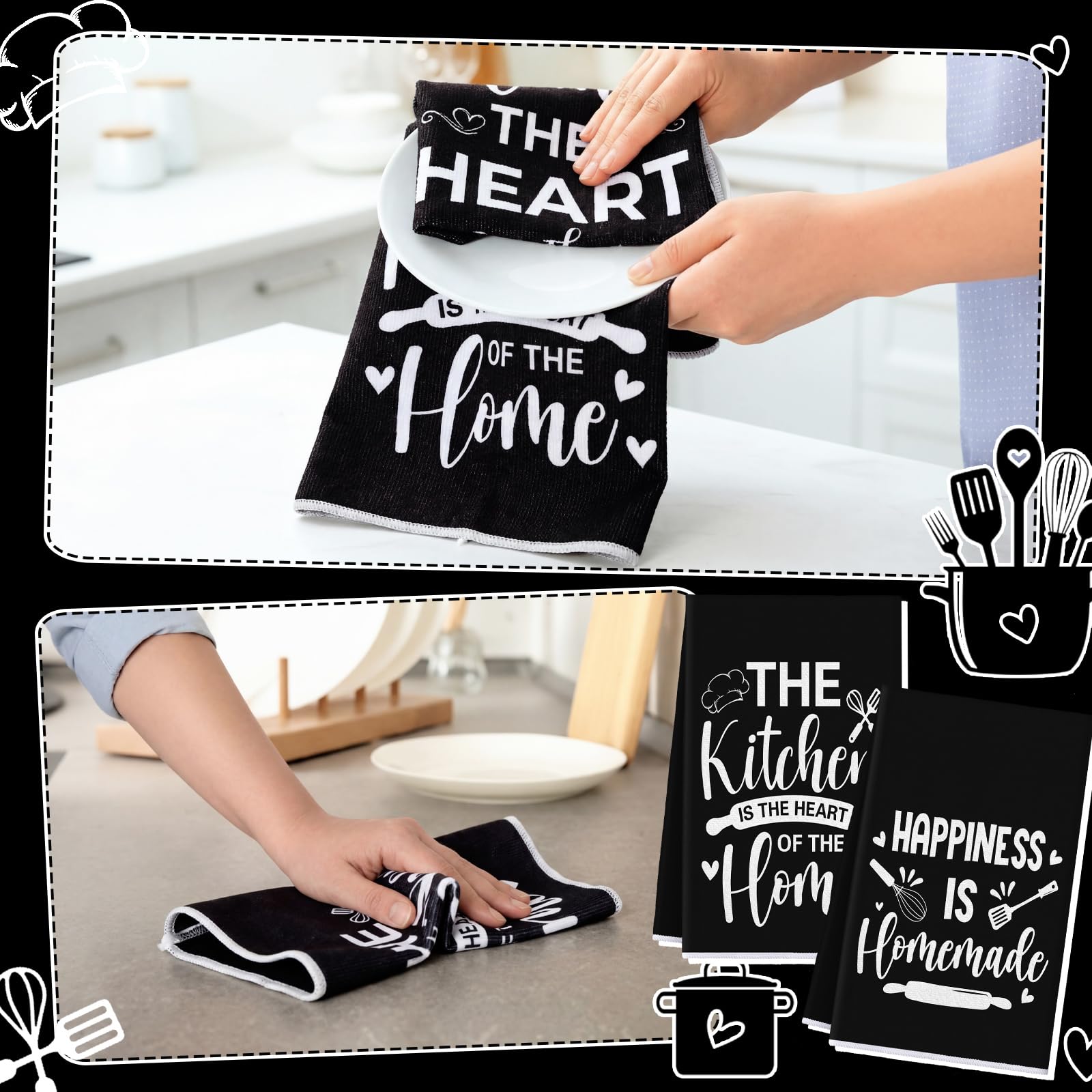 Package Includes: this set includes 4 pcs black kitchen towels with different funny quotes, adding a funny touch to your kitchen decor; The vivid sayings bring joy to cooking and baking time, making the kitchen a more cheerful space for daily use