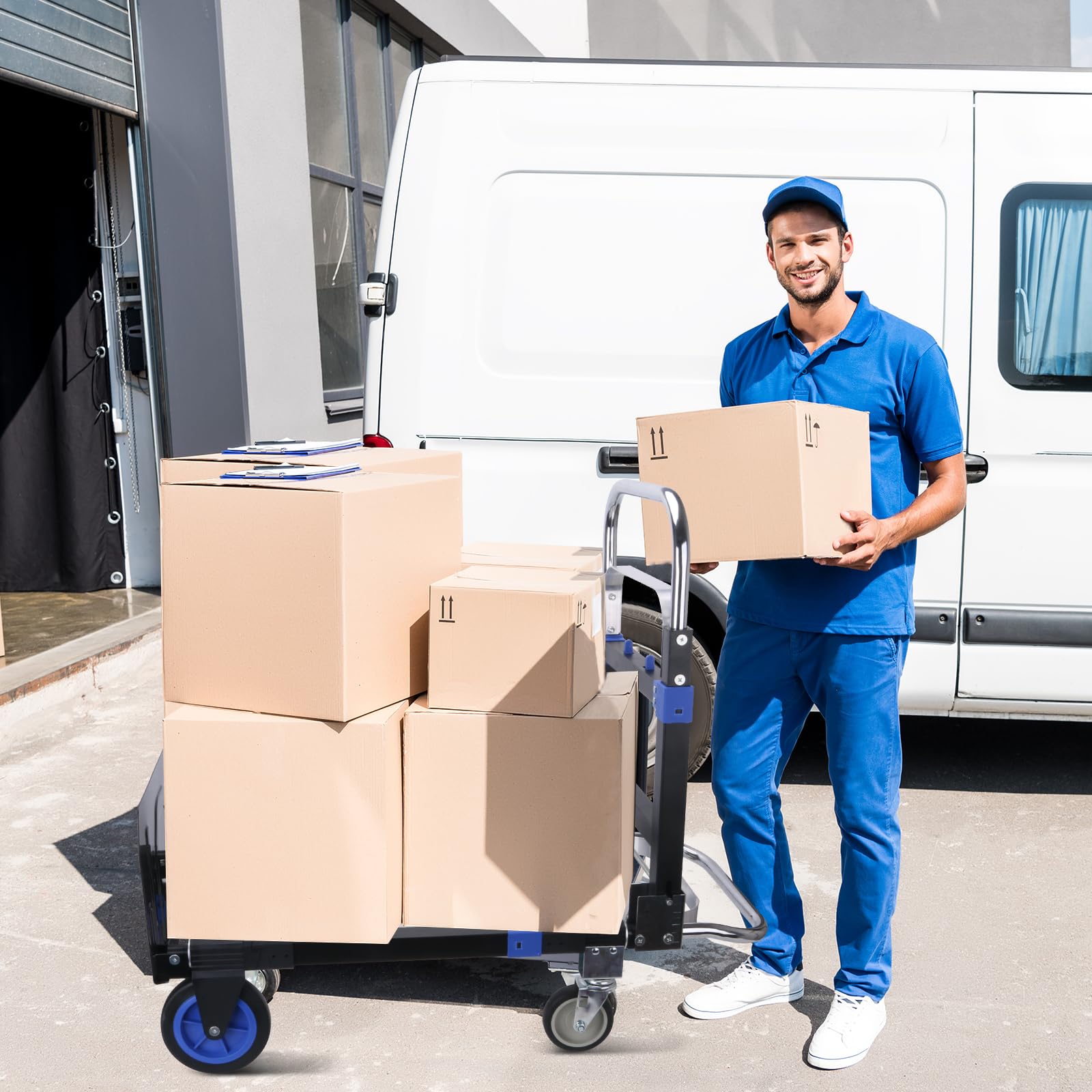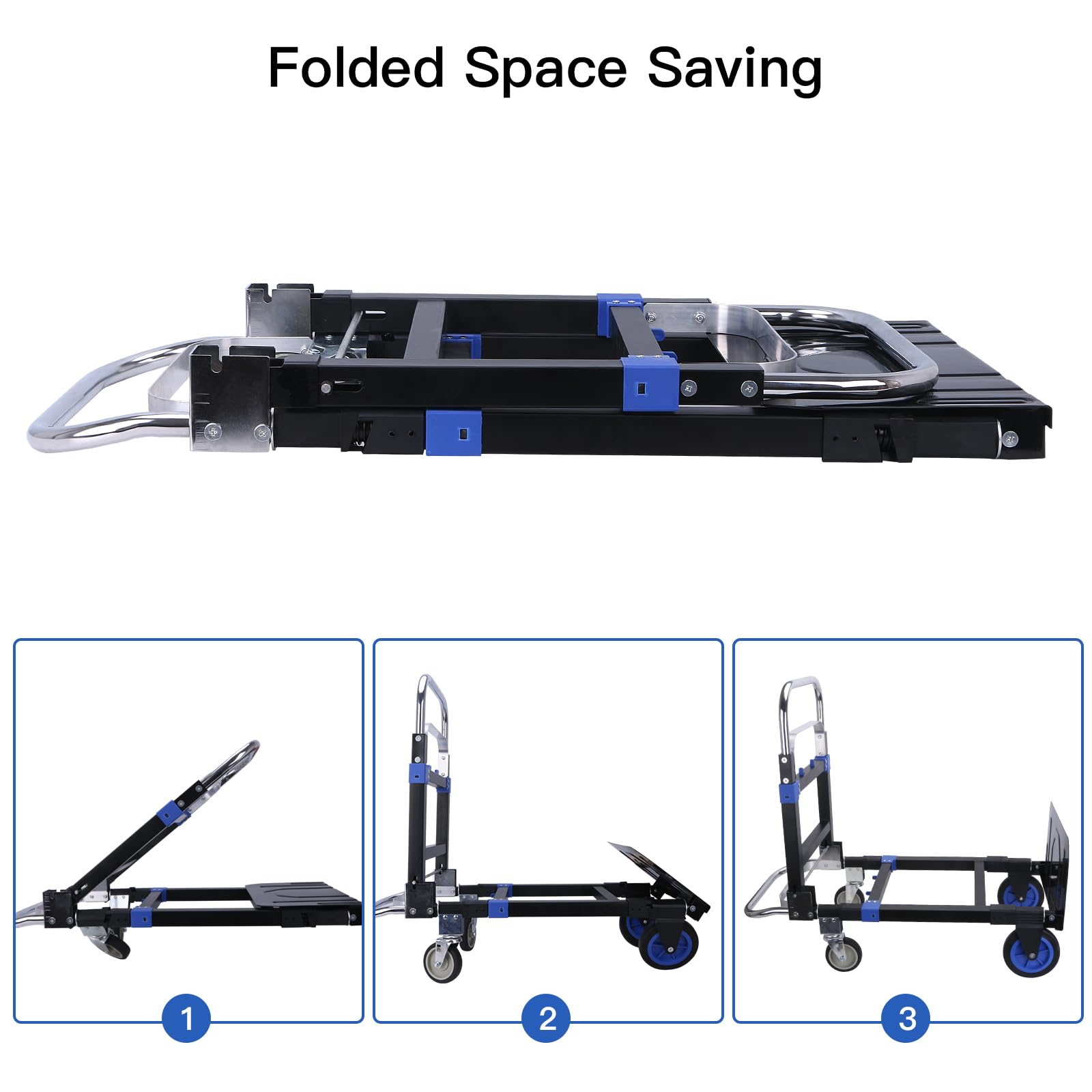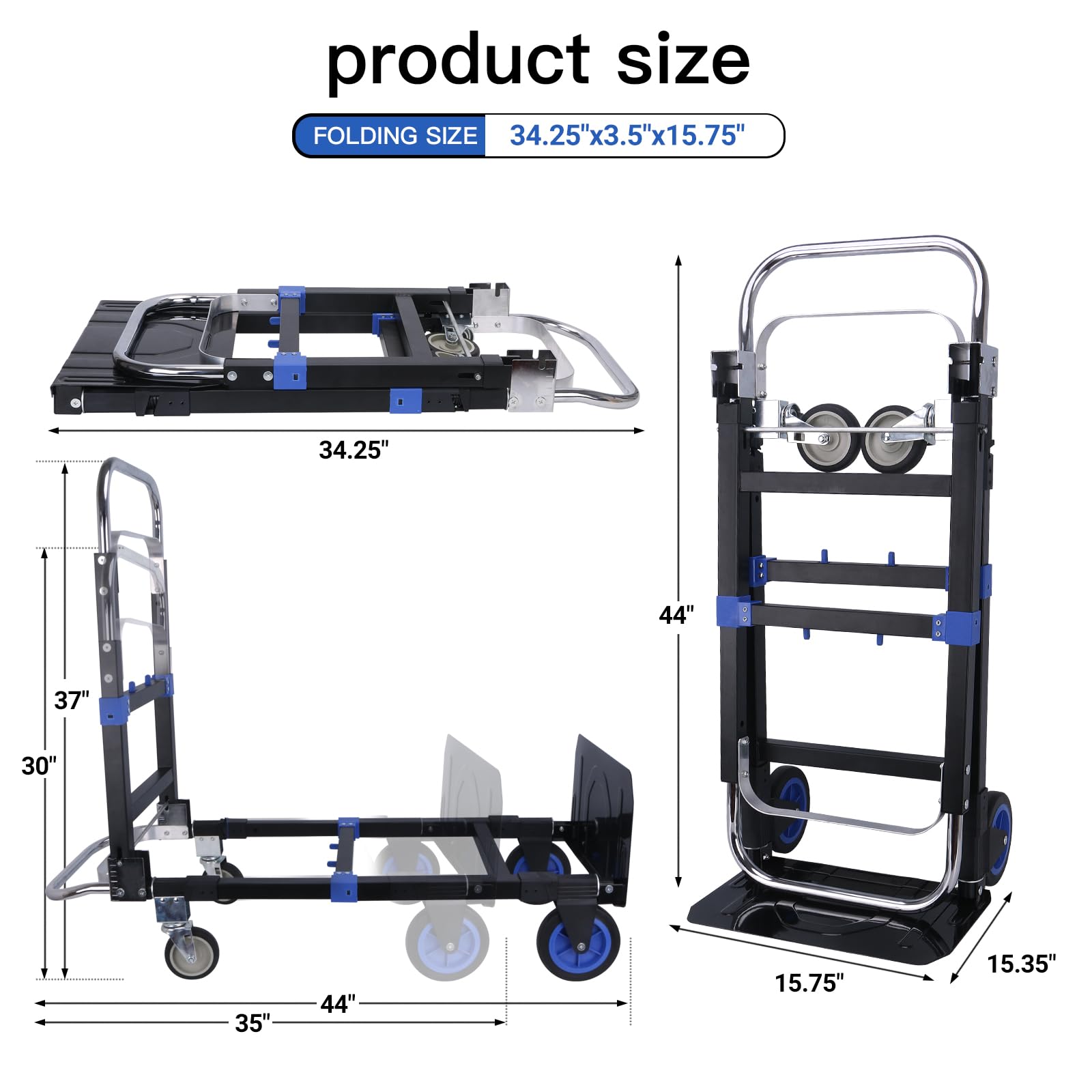 Easy to Use and Store: With its user-friendly design, this convertible hand truck is incredibly easy to use. Simply adjust the handle and platform according to your desired configuration, and you're ready to go. When not in use, it conveniently folds down for compact storage, saving you valuable space.