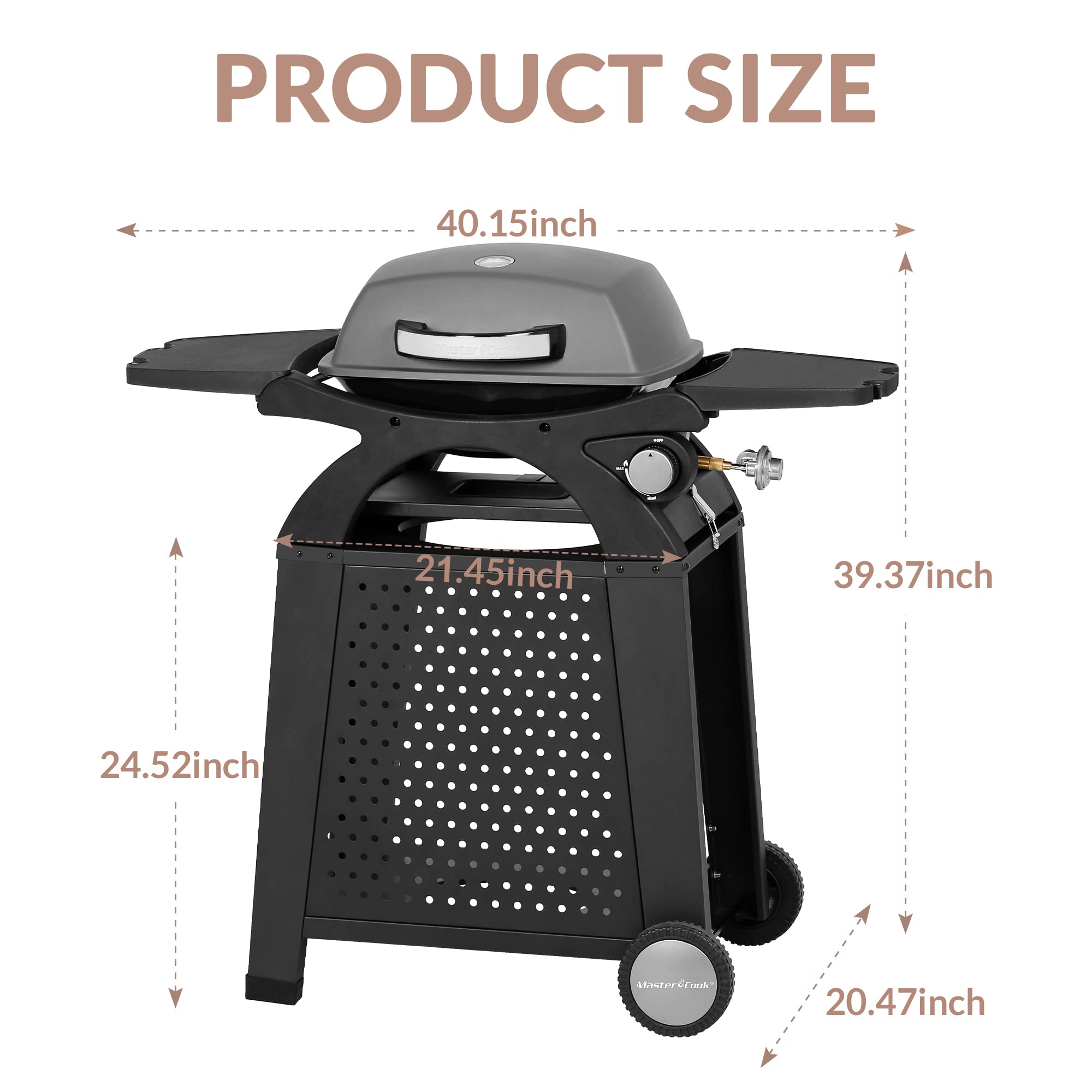 ❤DIMENSIONS - Our MASTER COOK propane gas grill is 40.15 L x 20.47 W x 39.37 H inch, 29.5 inch Length when removing both side shelves, and 18.7 x 14 inch of the cooking area, perfect for use at home or ideal for camping, picnics and outdoor events