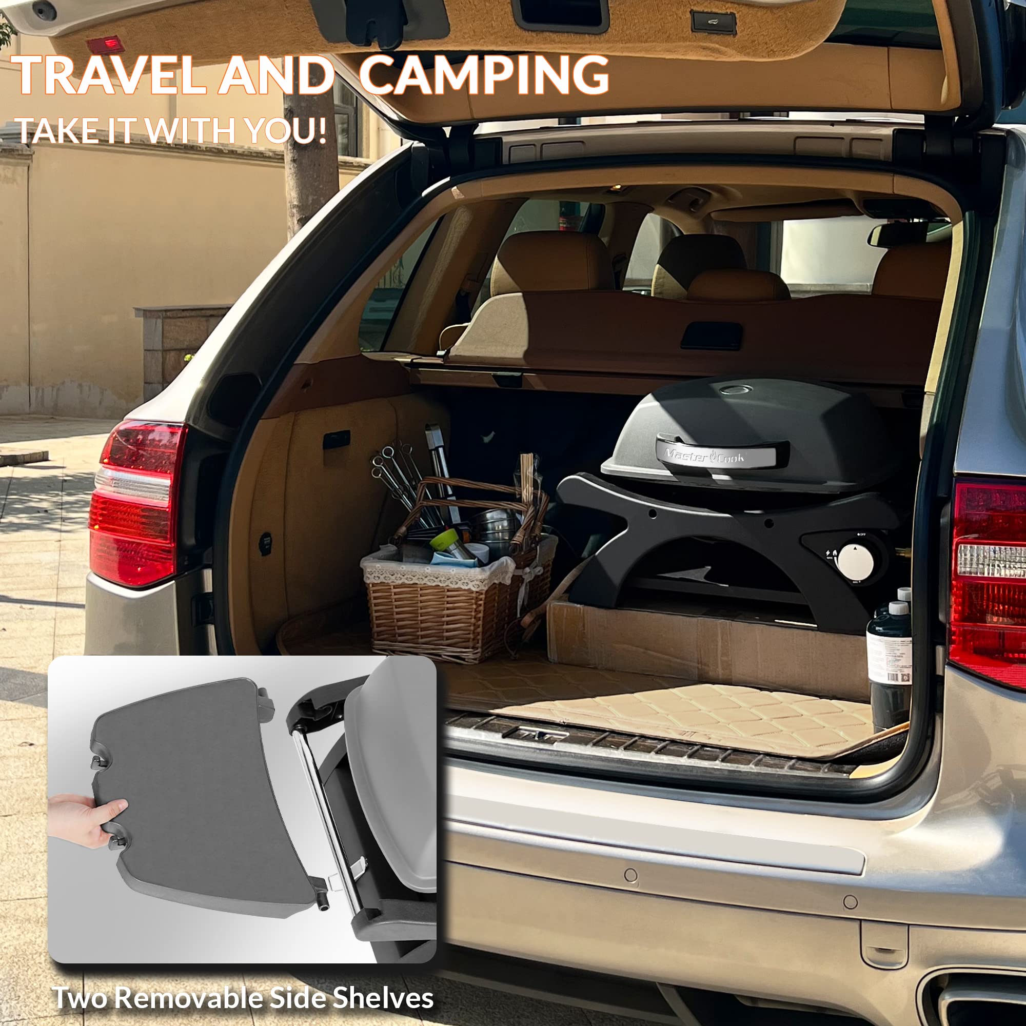 ❤One Grill for Two Appearance - Take the propane gas grill body from the cart for a griddle cooking combination on an outdoor table, can be a tabletop grill, easily to take the grill with you for traveling, camping or tailgate. Attach the propane gas grill on the cart with detachable stand, with gas bottle storage area for 20 lbs gas tank(not include)