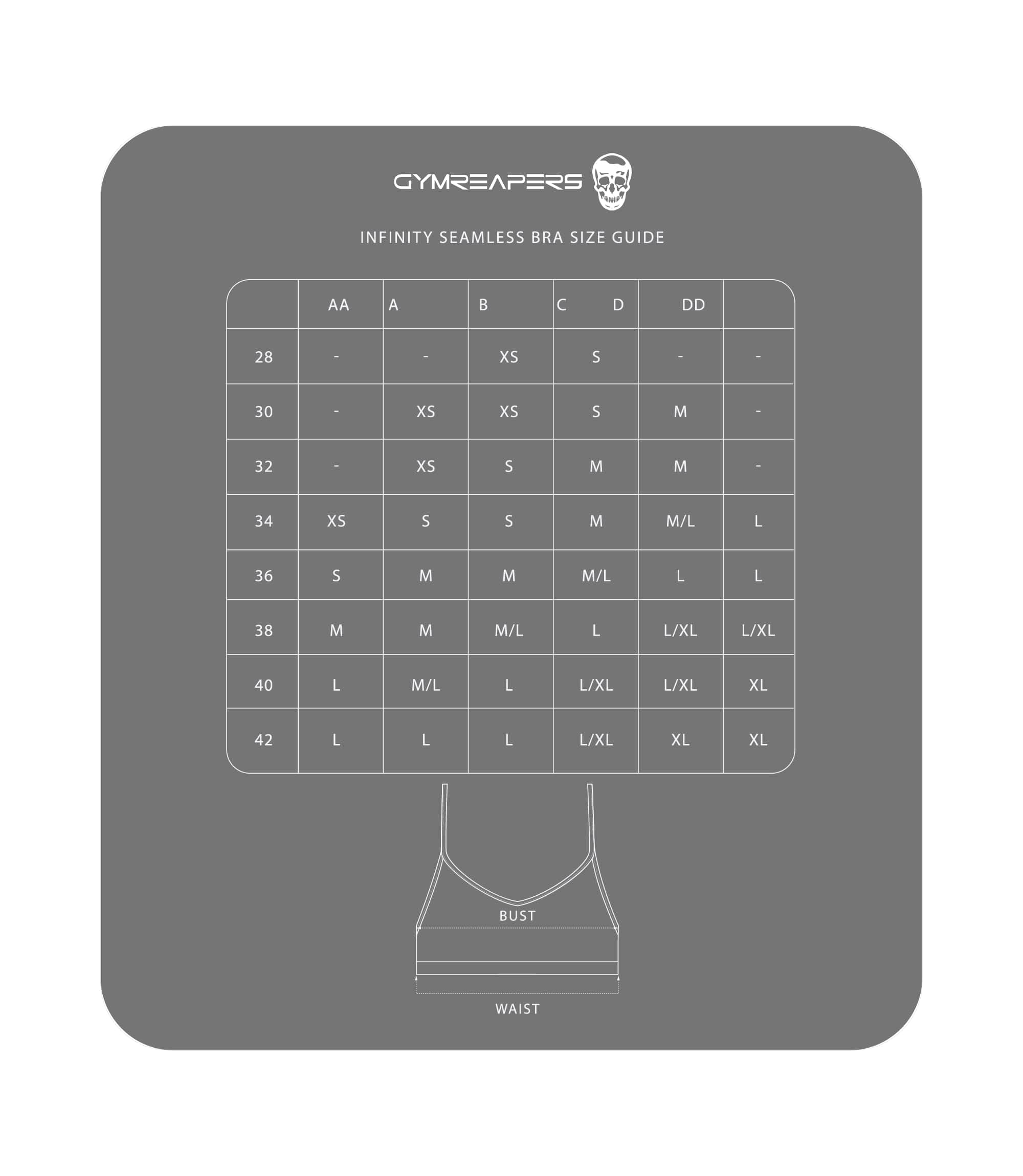 GYMREAPERS INFINITY BRA – The Gymreapers Infinity Sports Bra is engineered for relentless training, delivering a sculpted fit, flexible support, and unrestricted movement through every session. Crafted with breathable, 4-way stretch fabric, it adapts to your body’s demands—whether you're pushing through tough workouts, running errands, or layering it into your everyday wardrobe. Built for lasting comfort, performance, and versatility beyond the gym.