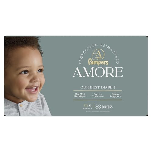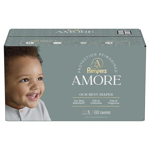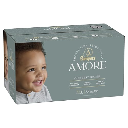 Introducing Pampers Amore—our best diaper. Thoughtfully crafted with 60+ years of Pampers quality and expertise, reimagined for today. Built with 5 layers of protection, it is our most absorbent diaper*. Pampers Amore diapers feature an all-around blowout and leak-guard barrier to help prevent up to 100% of leaks. Plus, they are built with our KeepDry liner for unbeatable dryness and comfort**. These diapers provide premium performance without compromise. They are Dermatologically accredited by the Skin Health Alliance and tested for 1000+ Harmful Chemicals. They are hypoallergenic and free of fragrance, parabens, elemental chlorine and latex (no natural rubber). Because real luxury means peace of mind. Pampers Amore diapers are designed with the finest materials. They are soft as cashmere, making them extra gentle on your baby’s delicate skin. Each diaper features delicate patterns as cute as your little one with a wide wetness indicator that lets you know when they go. Because when it comes to love, there's no such thing as good enough. Give them the best. Pampers Amore—made with love in every detail.among U.S. non-overnight taped diapers; excluding Super Economy Pack **Based on size 4 Pampers Amore. 3 typical wettings of 75ml under 0.5psi pressure. Among day-and-night taped diapers