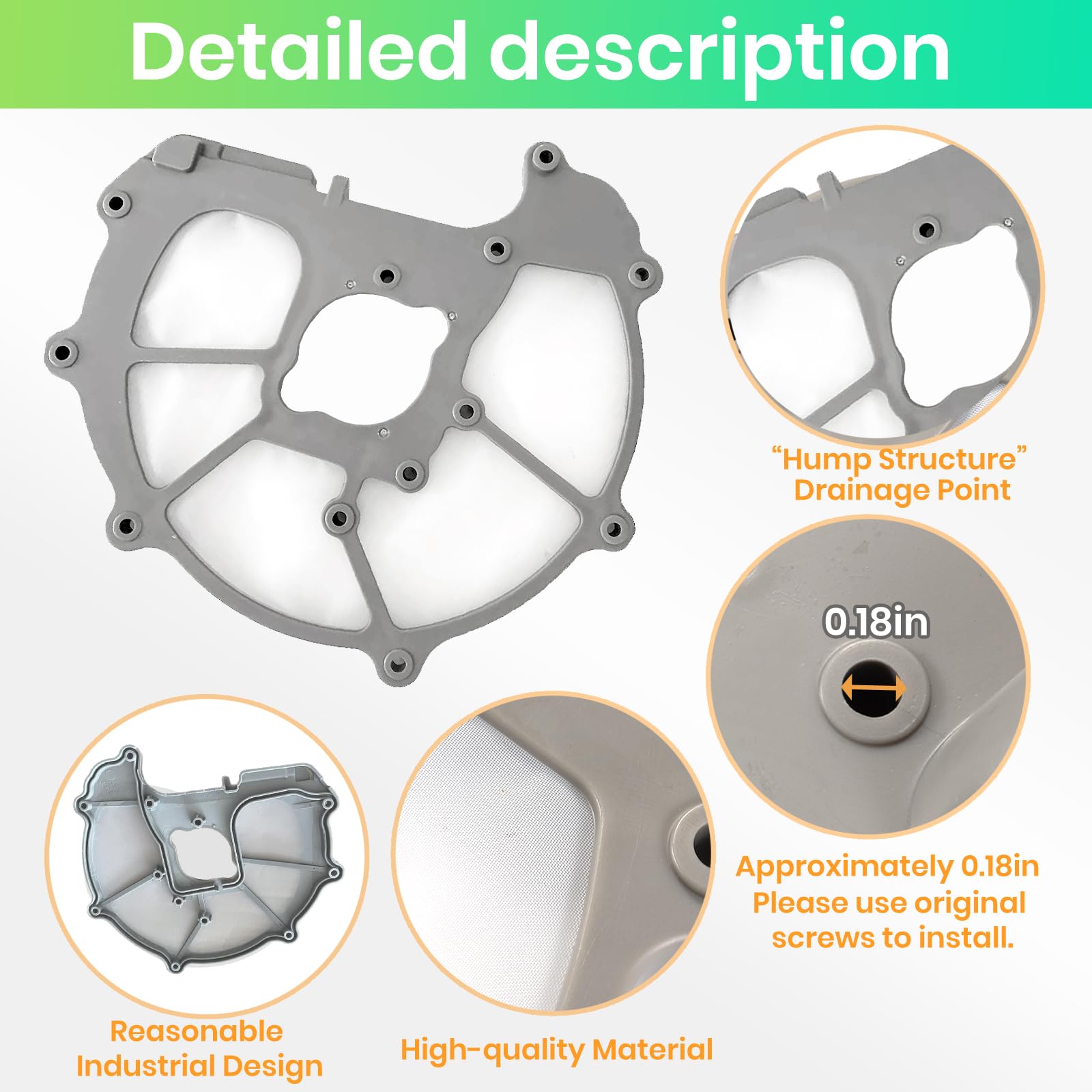 3. Installation Location: The filter mesh is installed above the A/S Assy-Sump Dishwasher Pump and Motor, an essential component of the dishwasher. It filters impurities and dirt from the wash water, protecting the dishwasher's pump and motor.