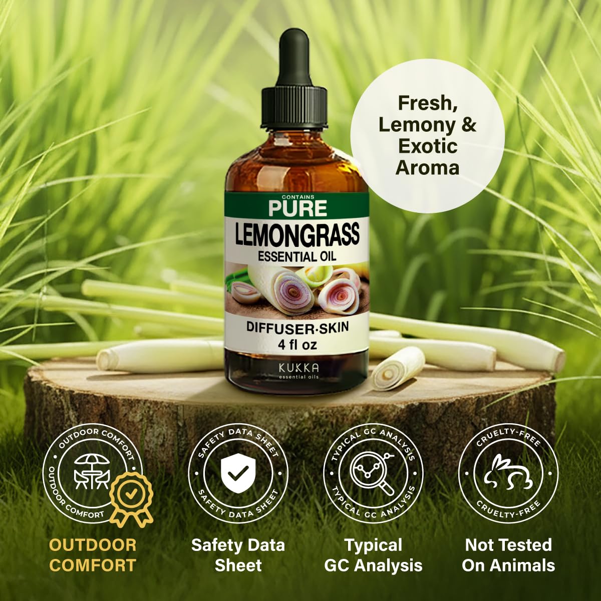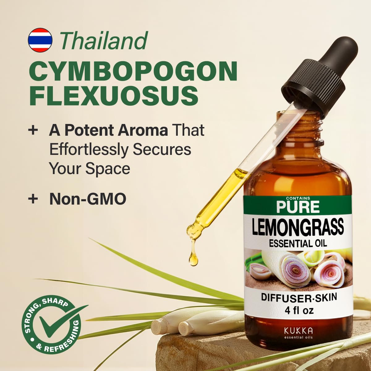 Kukka lemongrass essential oil for diffuser. Add 2-3 drops of lemongrass oil diffuser for a fresh, exotic scent. Essential oils lemongrass creates an uplifting environment and keep spaces buzz-free.