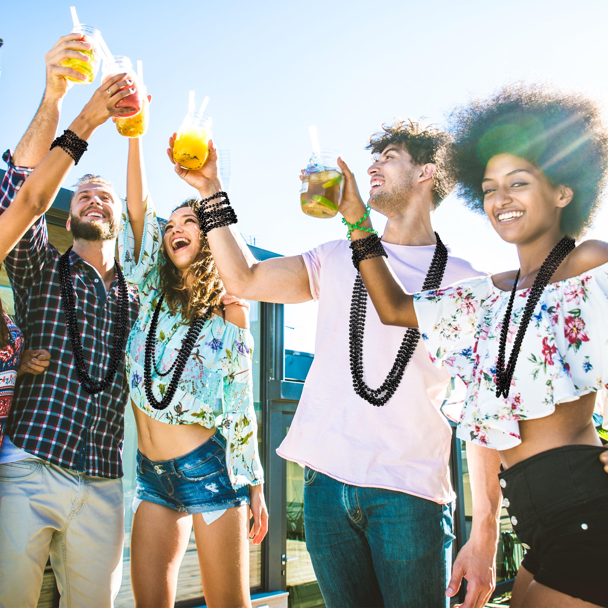 Enhance Your Christmas Mardi Gras Celebration with Colorful Accessories. Immerse Yourself in the Joyful Atmosphere of Diverse Festivals. Package includes: 100PCS black bead necklace Specifications: Materials: Plastic Size: 33 in Product Design: Bead accessories are suitable to parade carnival weddings and share with others. Bead necklaces are light in weight, exquisite in workmanship, and not easy to fade. They are suitable for matching with various holiday clothes.