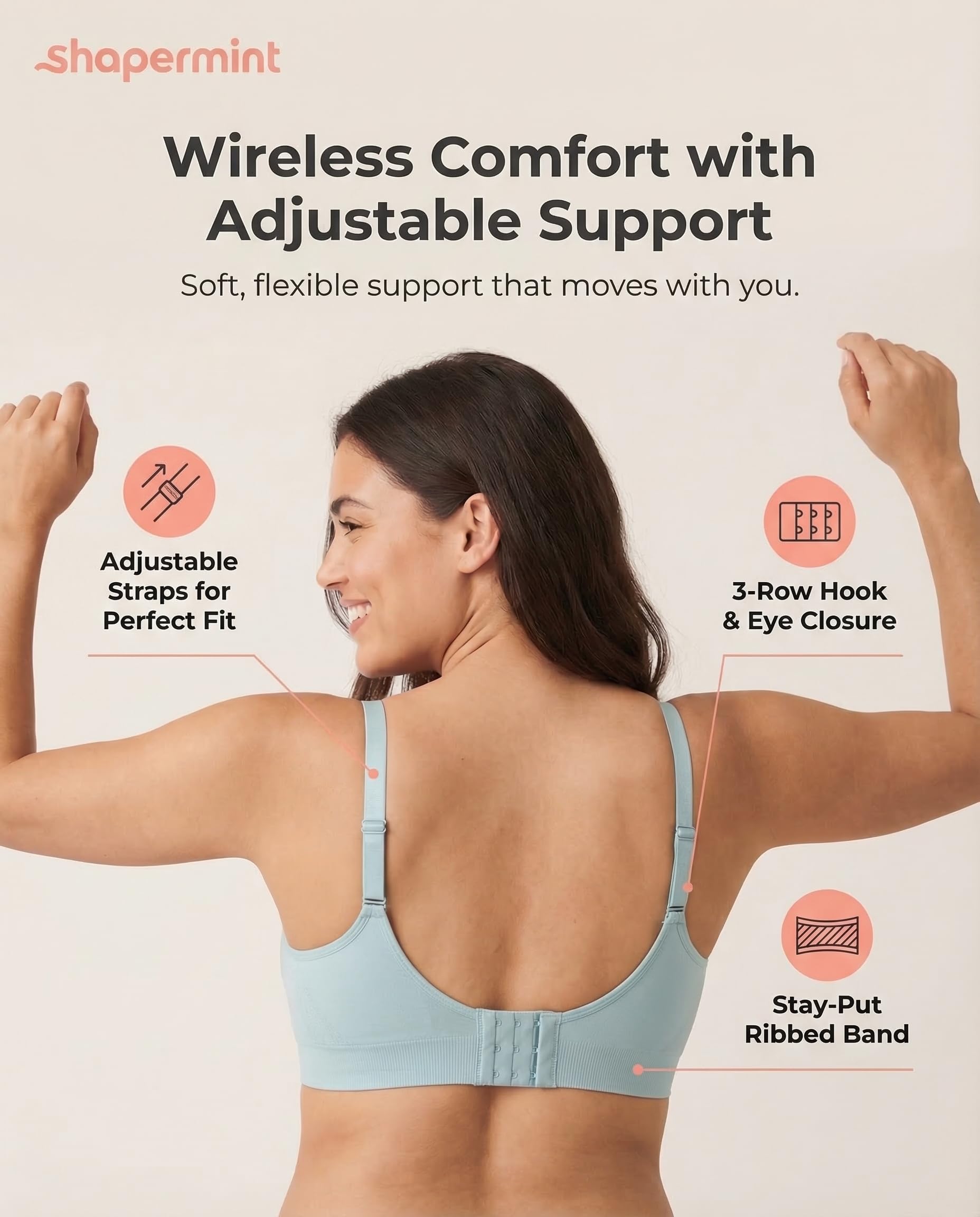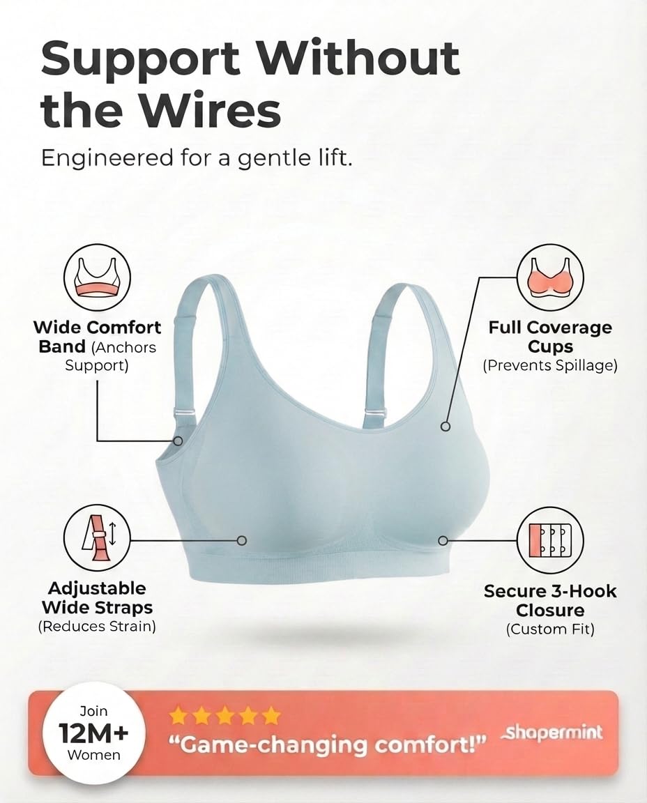WIRELESS SUPPORT & LIFT: Experience comfort with bras for women no underwire that smooth, lift, and support without pinching or poking. This wireless bra offers gentle shaping and all-day ease while keeping you confident and supported.