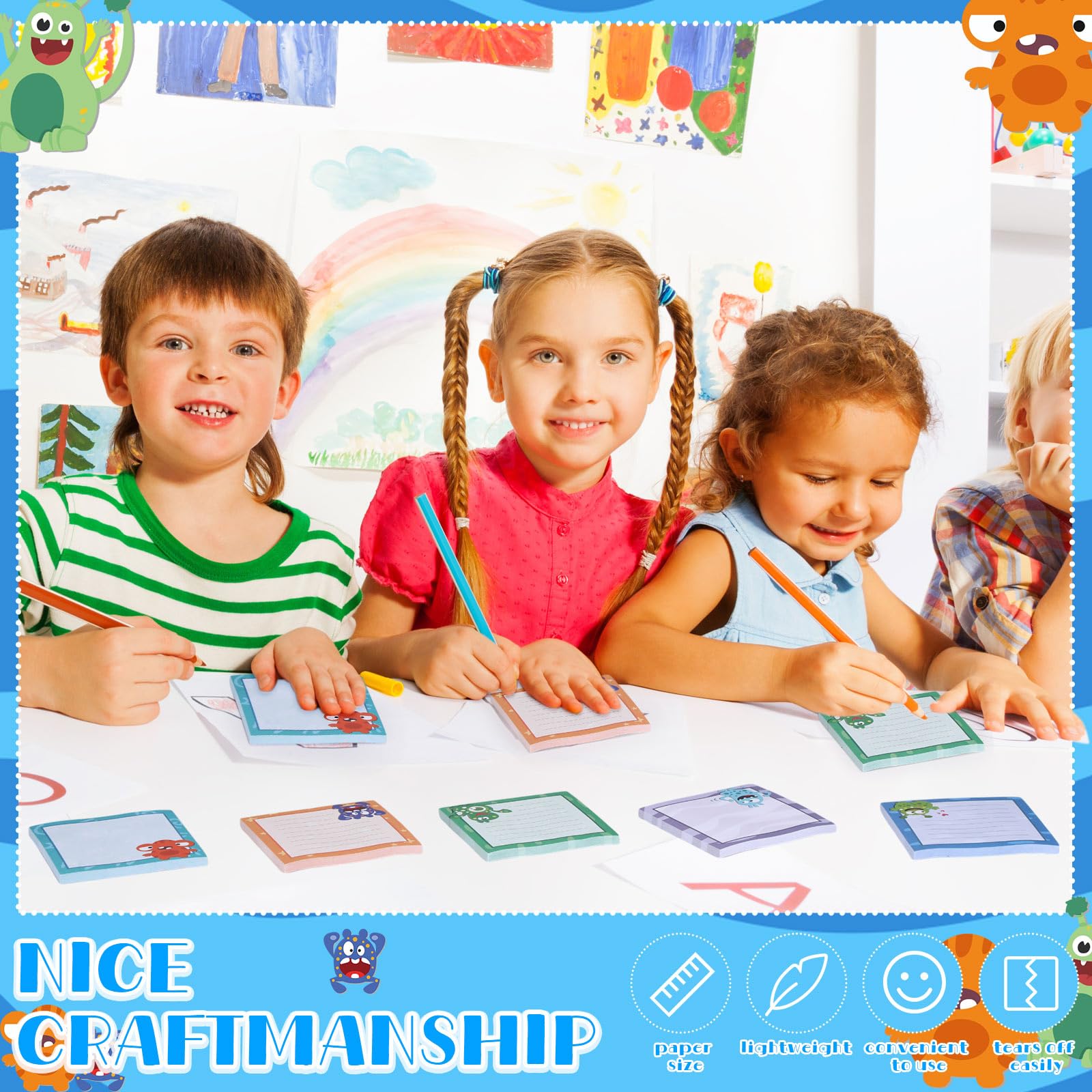 Cute Pattern Design: our funny notepads are designed with 12 different patterns of monsters, cute and eye catching, 6 pieces blank ones and 6 pieces underlined ones, simple and stylish, which will add a little fun to your office, room, bring you a pleasant mood