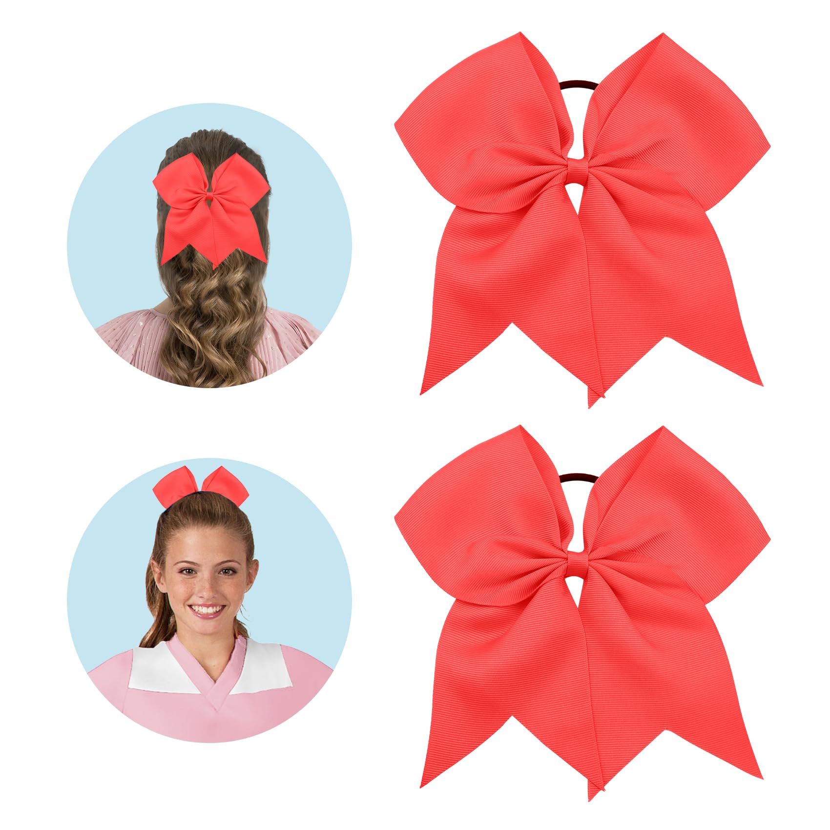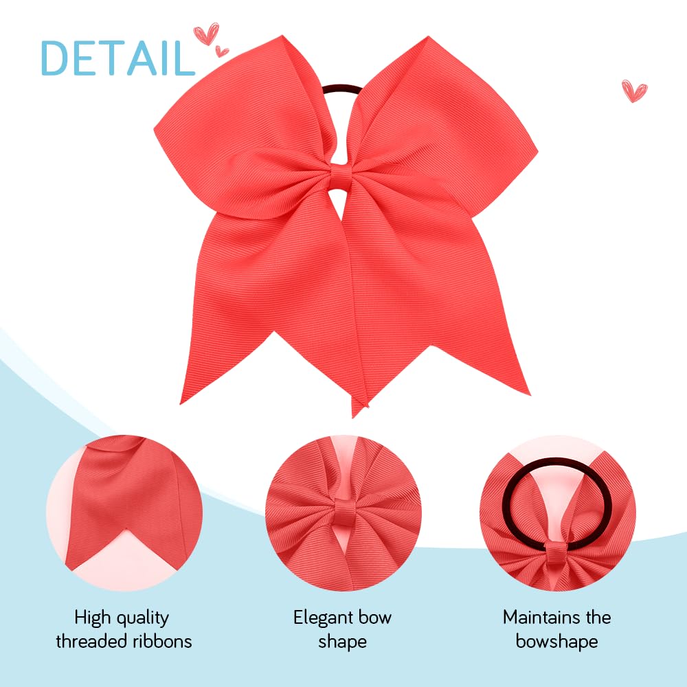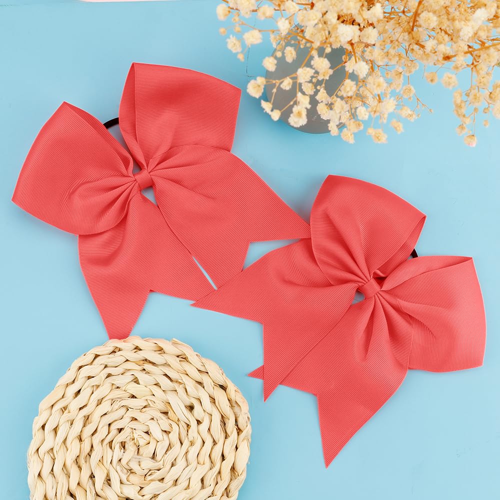 Great quality: 2pcs jumbo 8 inch hair bows for girls are made of high quality 3 inch wide grosgrain ribbon with elastic ponytail holder, light weight about 12g/pc, 100% handmade cheer bows with beautiful shape, the workmanship is excellent, the bow and the hair ties are well glued, and you don't have to worry about falling off, they stay in the ponytail well, girls can jump and shout when they wear it.girls bows for hair, is a favorite hair accessory for all teen girls.