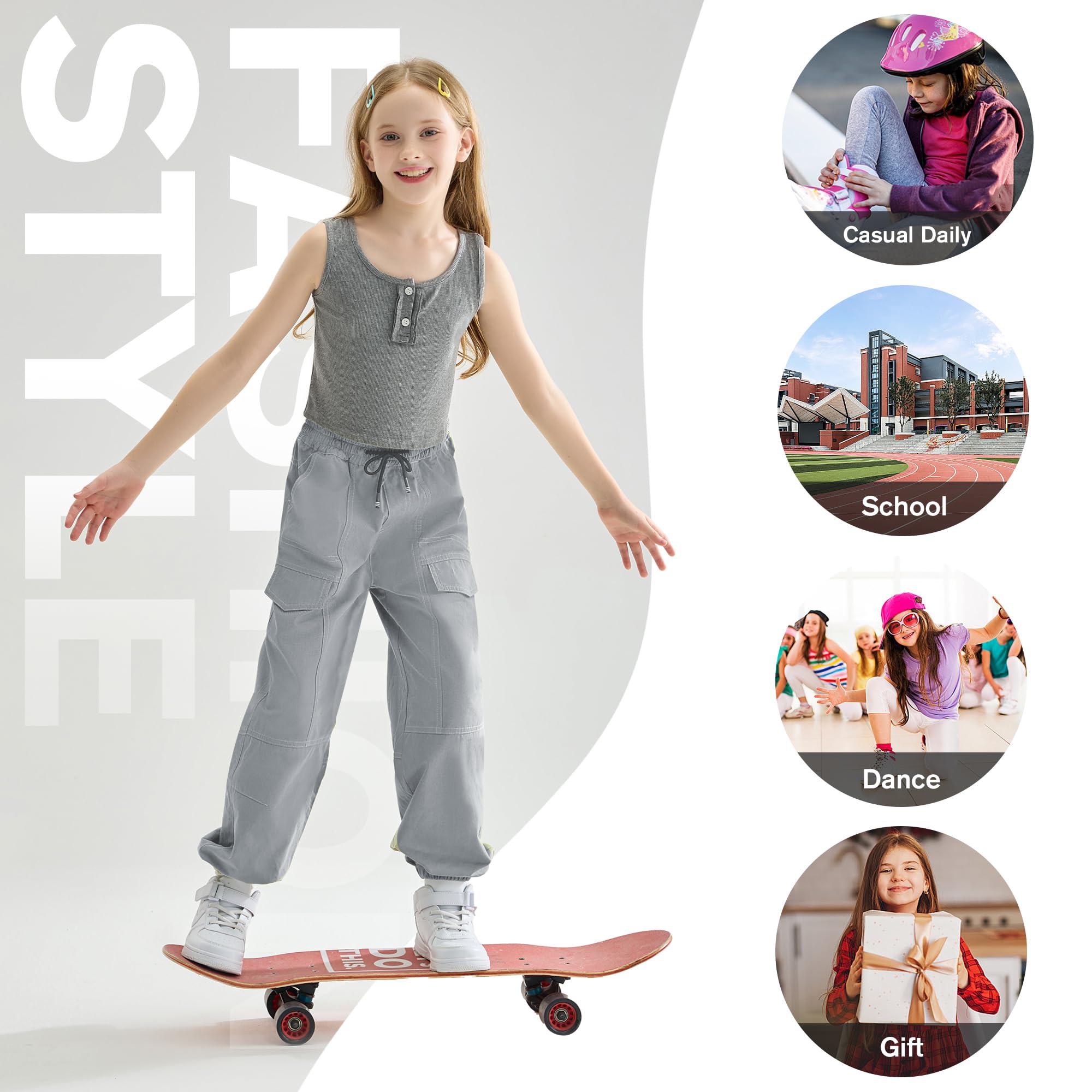 【Various Occasions】: Relaxed-fit girls cargo pants are perfect for kids outdoor activities, casual, school, sports, running, jogging, hiking, hip hop, streetwear, dance, party, club, gift, skateboard, rap competitions or everyday wear, birthday gifts for teen girls