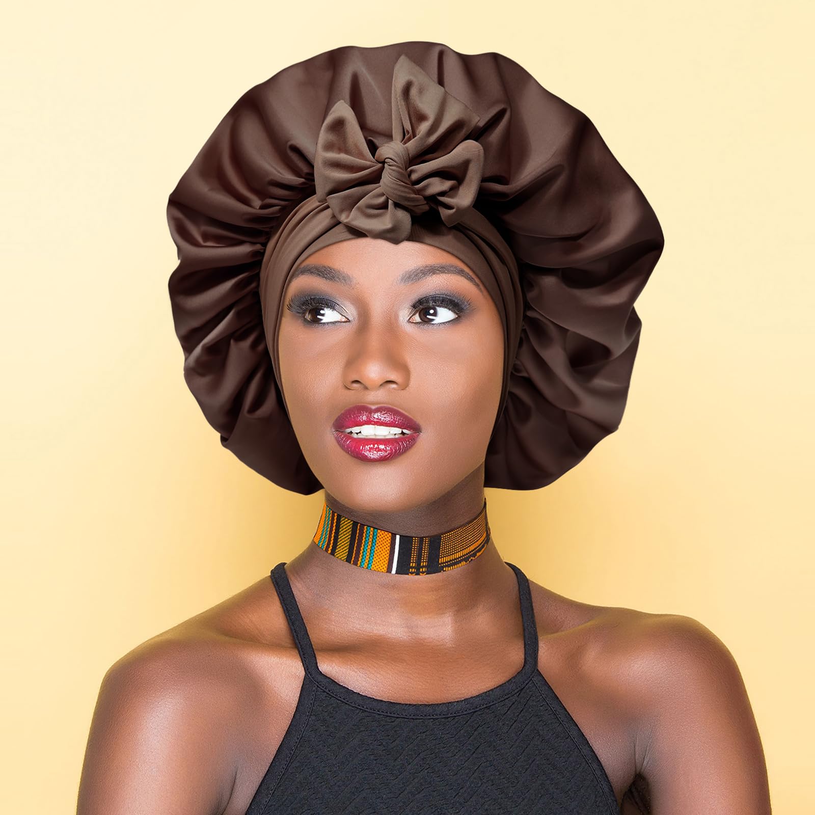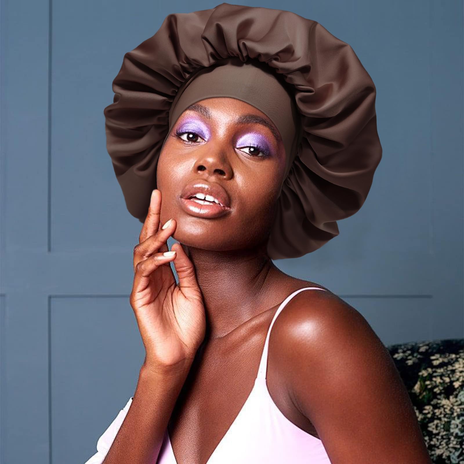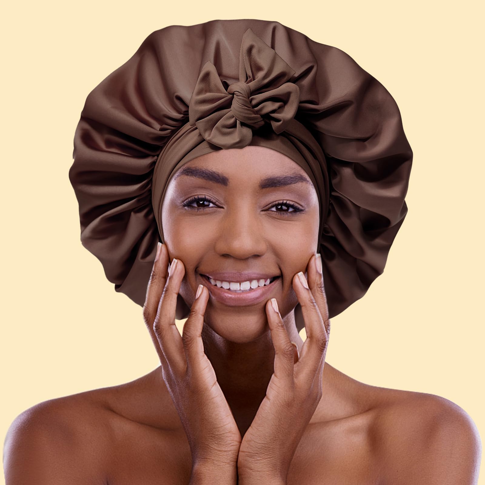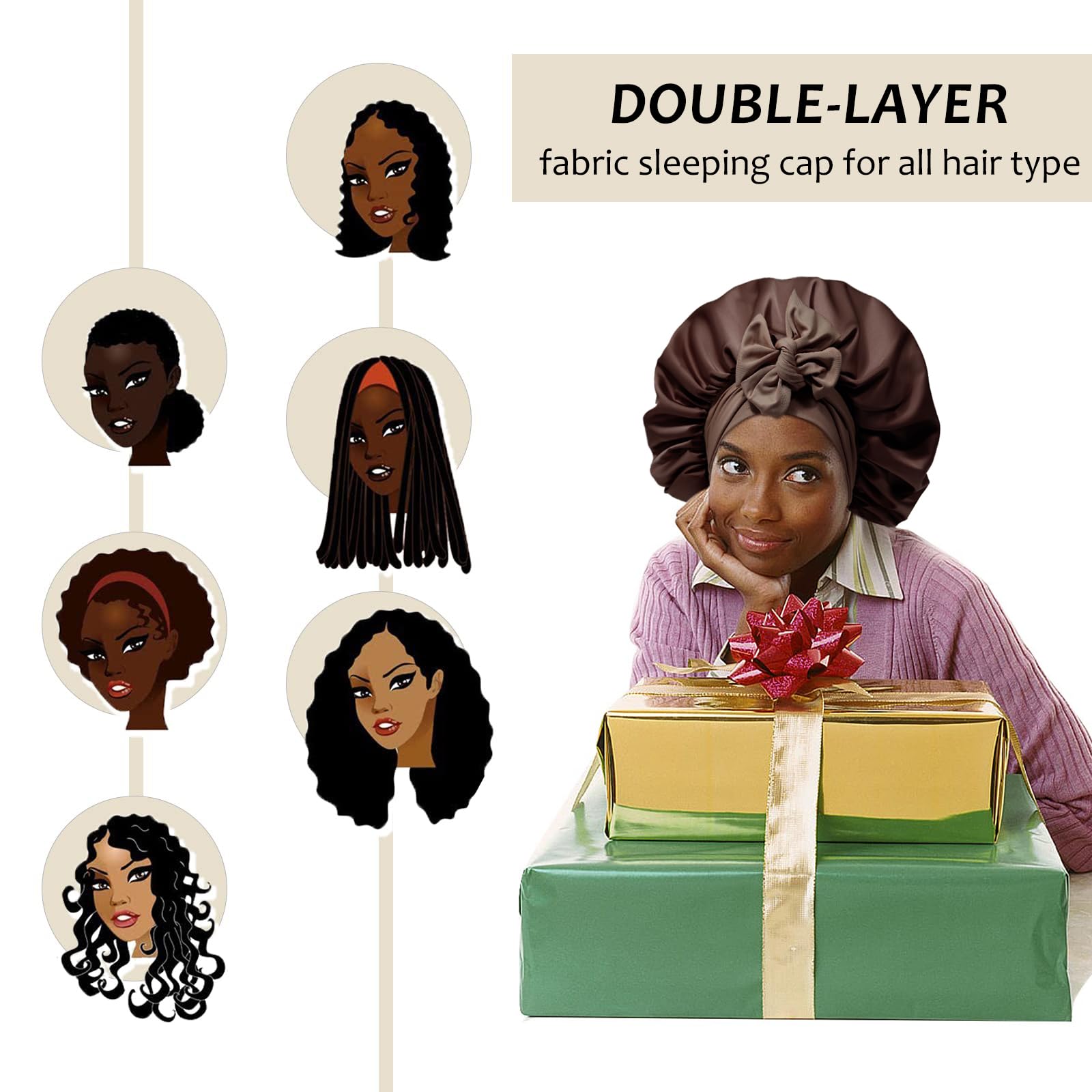 LARGE SLEEP CAPS MAKE YOUR LIFE EASY - A large satin hair bonnet wraps all the hair and keeps you from washing, making up, working, doing housework, and cooking without mess. A double-layer satin nightcap can keep you warmer in winter