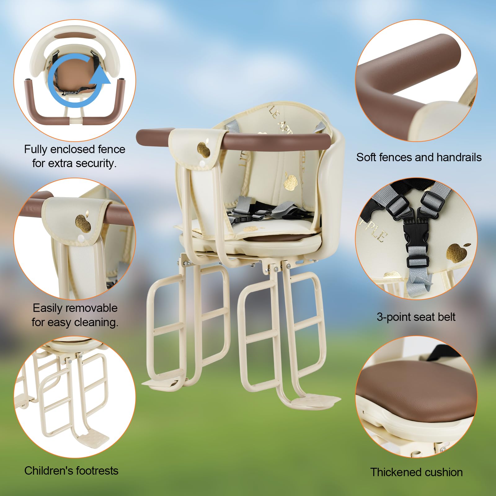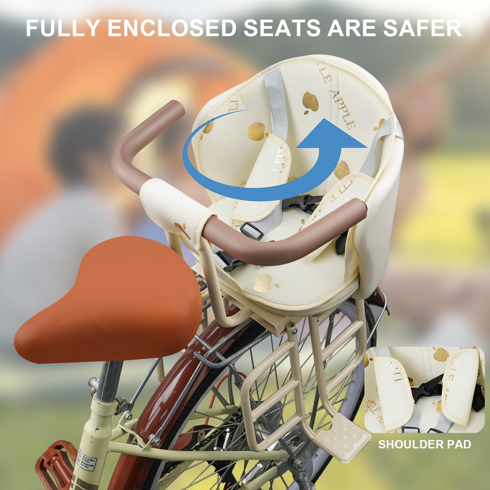 The baby bike seat semi-enclosed with seat belt design with thickened cushion and backrest, making the baby safer while ensuring the baby's comfort, and the appearance of the rear-facing bike seat is also more beautiful