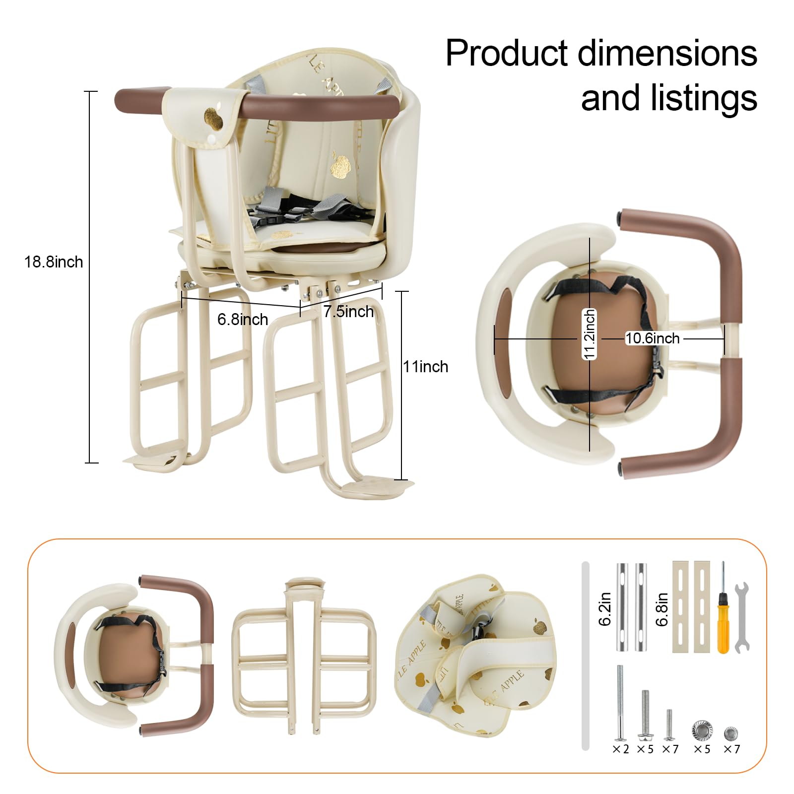 EASY INSTALLATION: This child bike seat we will come with installation tools and instructions, follow the instructions to complete the installation easily. Note: Please tighten each screw for more safety and stability