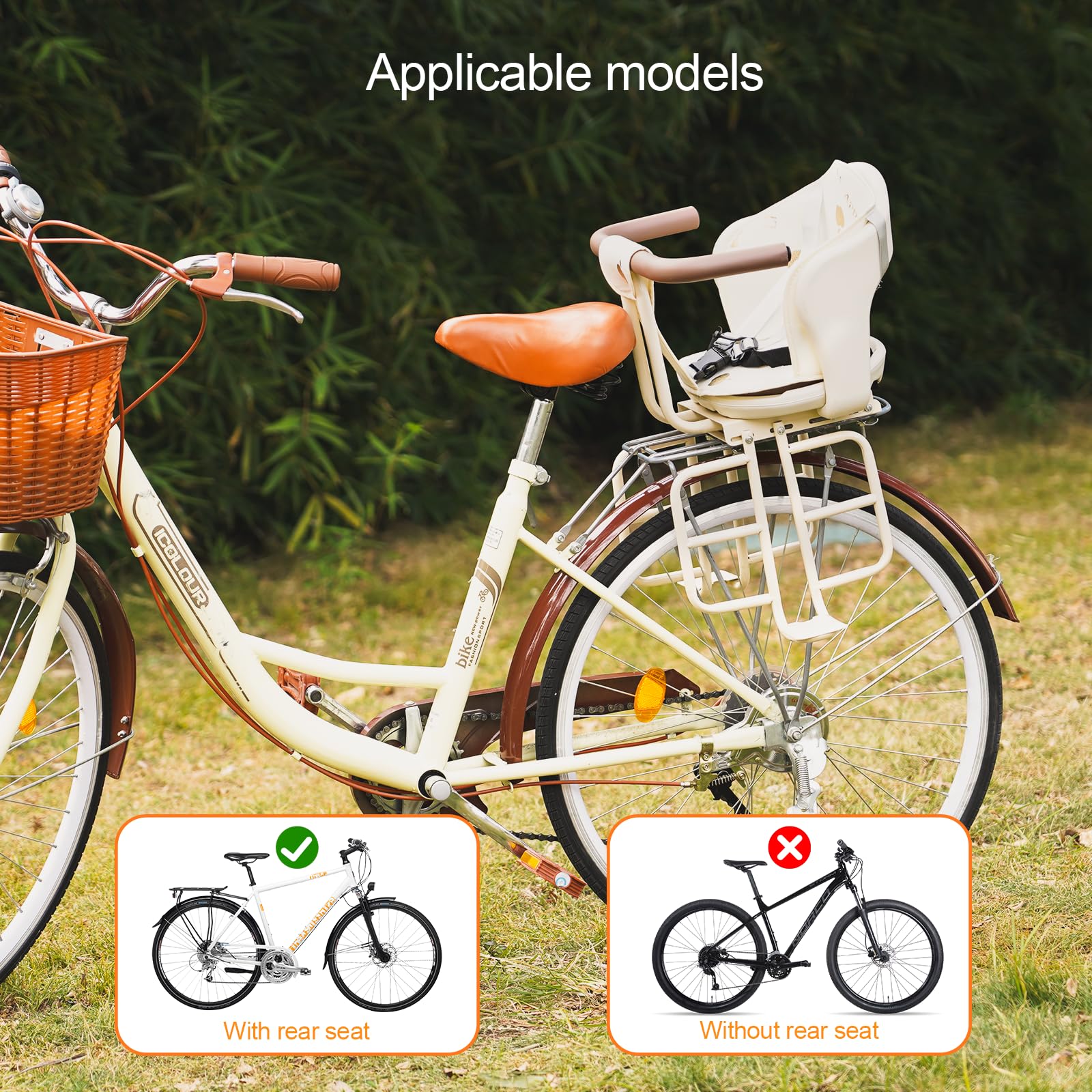 WIDELY APPLIED: Universal child bike seat, toddler bike seat for adult bike compatible with most bikes on the market, mountain bikes, city bikes, folding bikes, cruiser bikes and other bikes with a rear seat