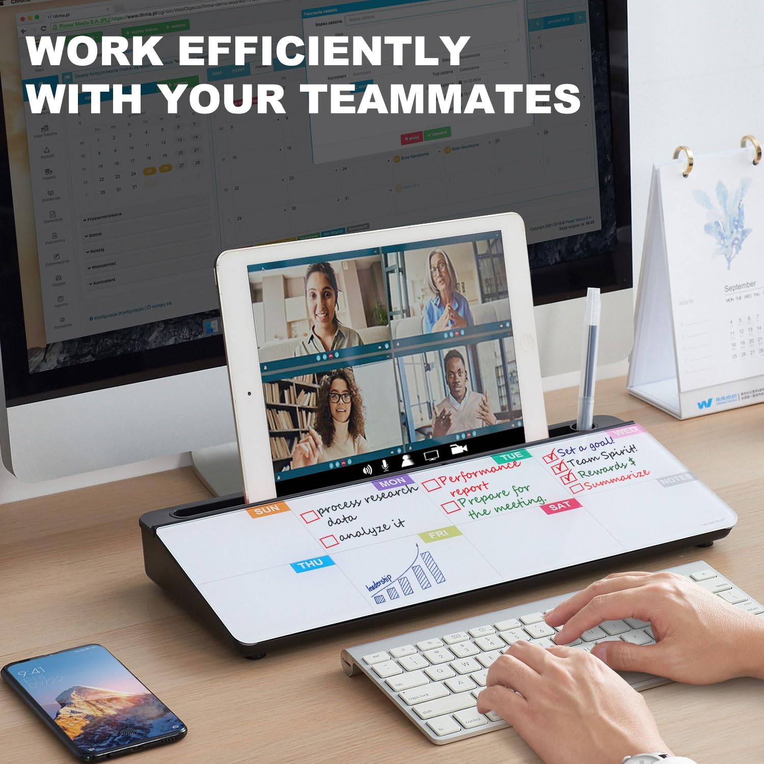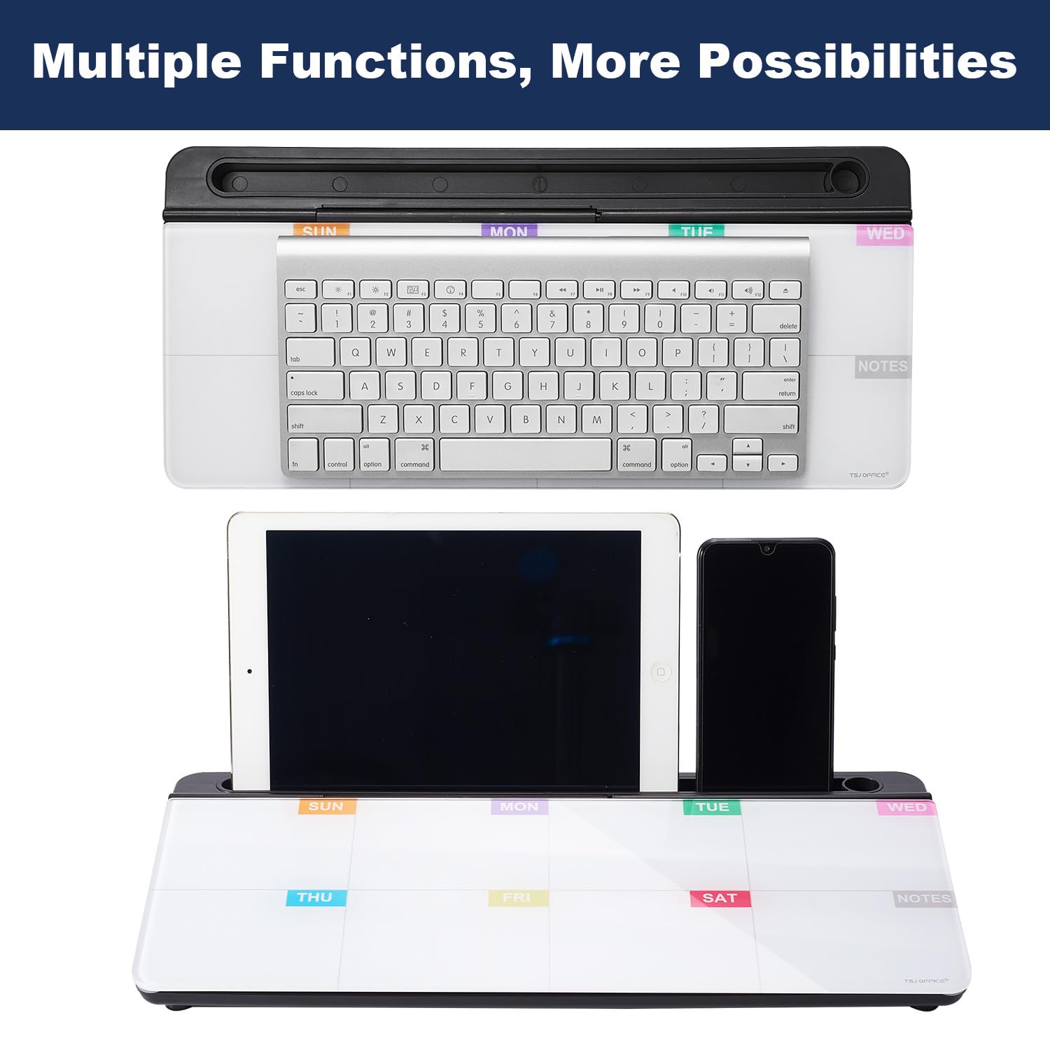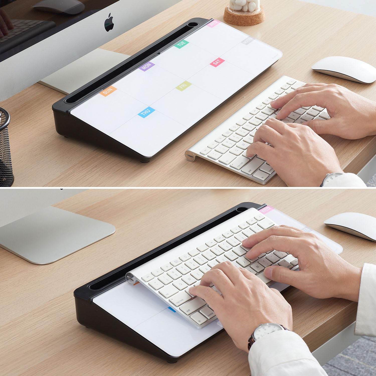 PERFECT DESIGN: Quickly record your weekly schedule-Sunday through Monday. Maximize your work area. The desktop weekly calendar whiteboard is designed to sit perfectly between a keyboard and monitor and is slope angled for comfortable reading and writing, or typing when you are using it as a keyboard stand.